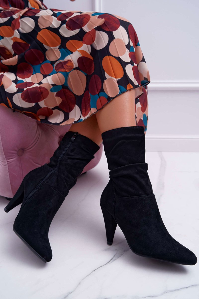 Botki Damskie Na Słupku Za Kostkę Ocieplane Czarne Temma