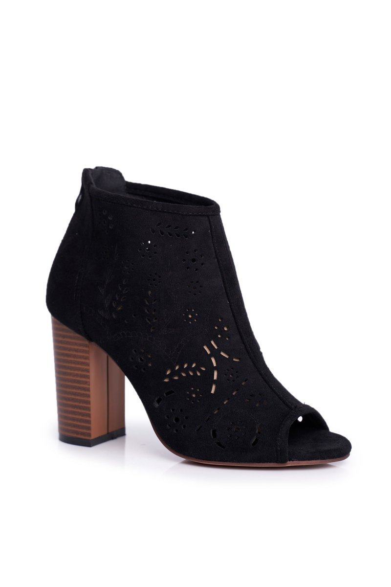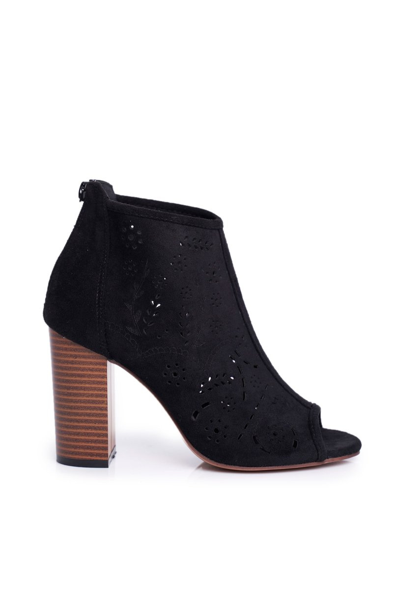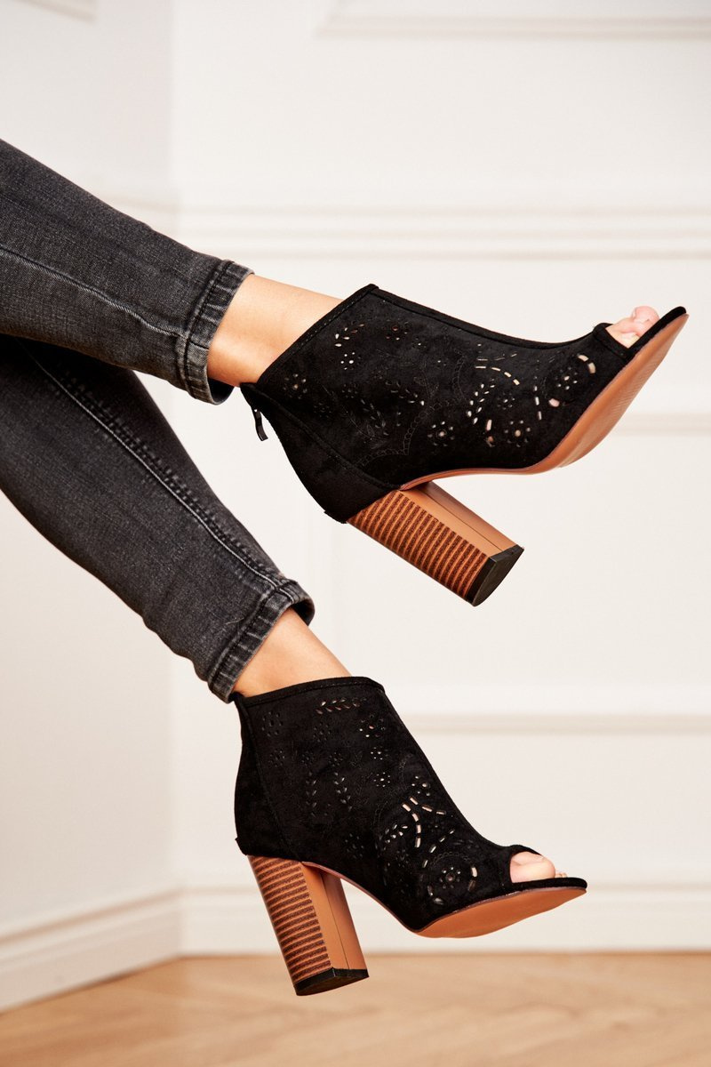 Botki Damskie Na Słupku Zamszowe Ażurowe Czarne Papillon