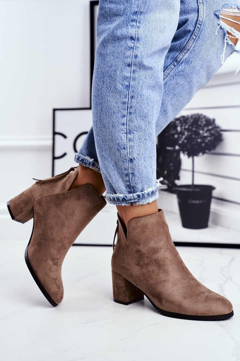 Botki Damskie Na Słupku Zamszowe Beżowe Mimosa