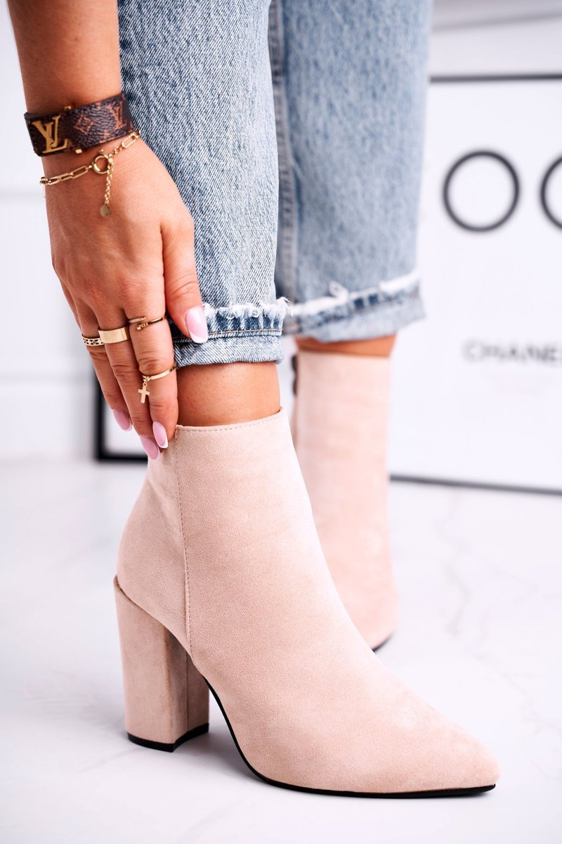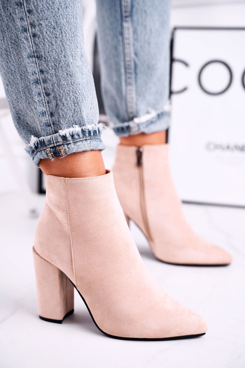 Botki Damskie na Słupku Zamszowe Beżowe Sharks