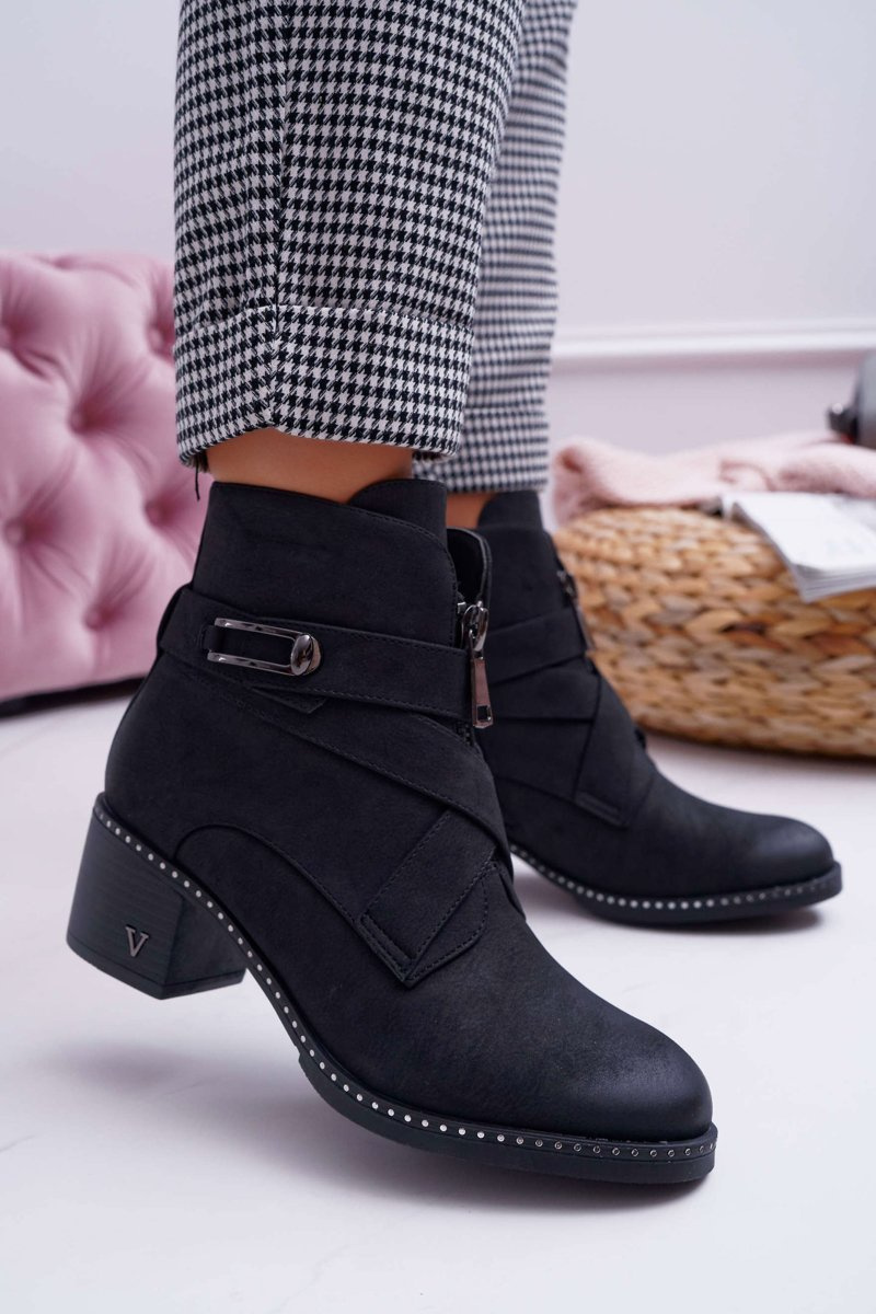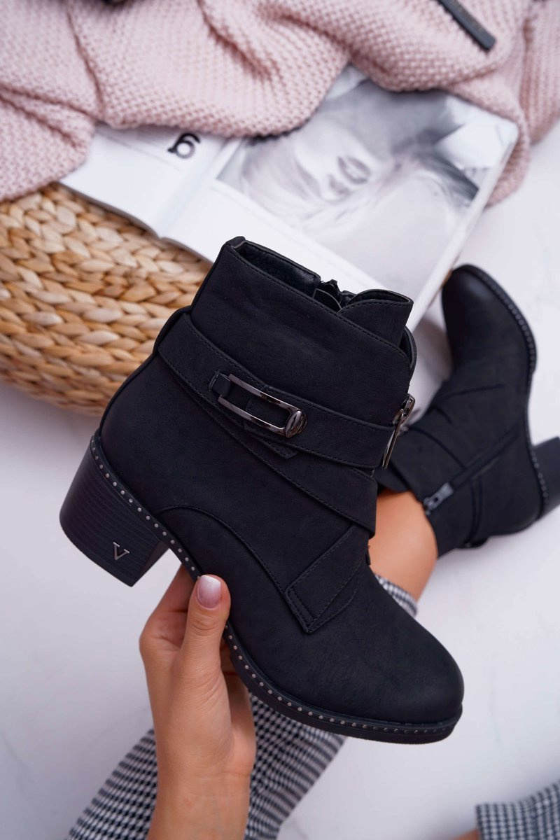 Botki Damskie Na Słupku Zamszowe Czarne Brave