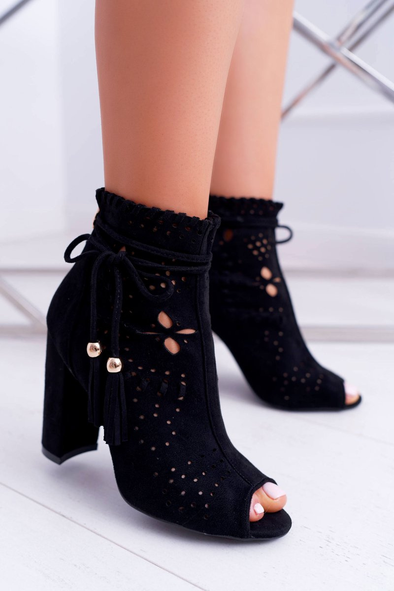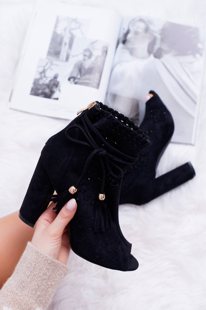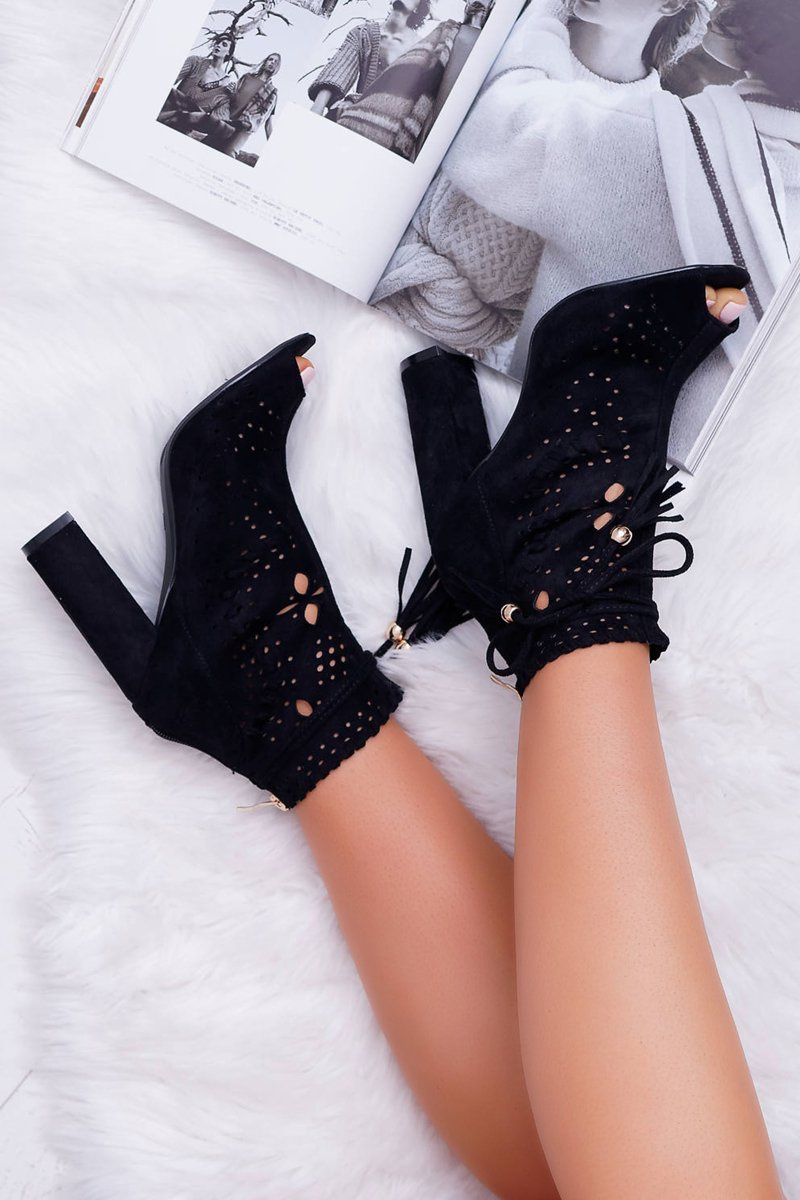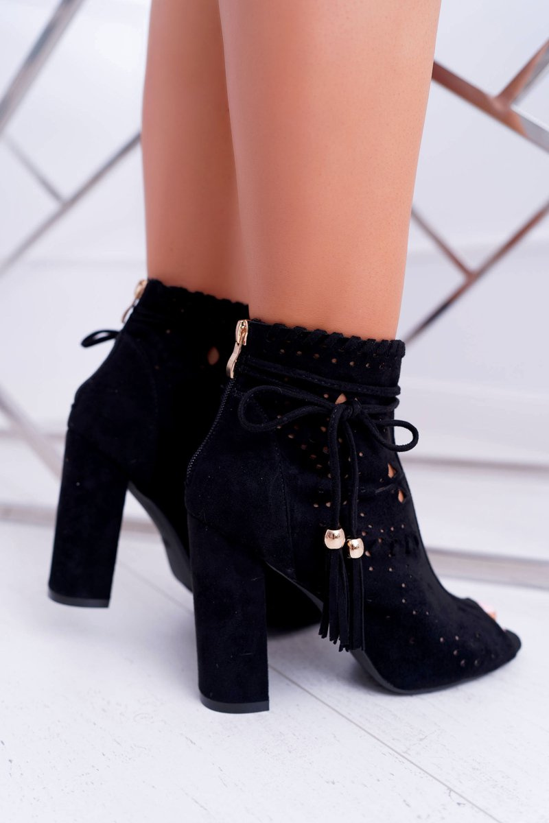 Botki Damskie Na Słupku Zamszowe Czarne Corinne