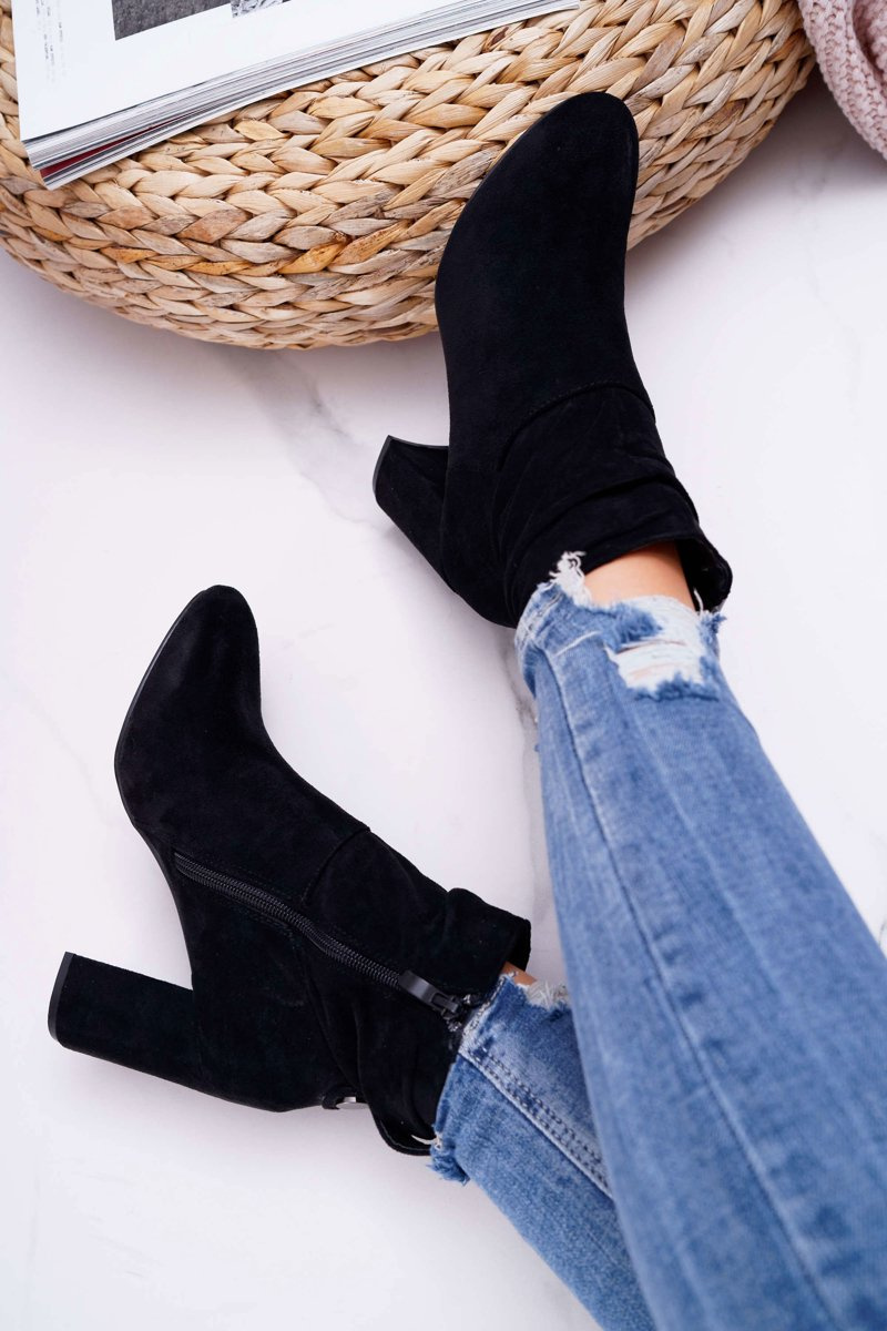 Botki Damskie Na Słupku Zamszowe Czarne Greybond