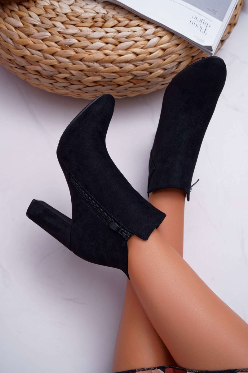 Botki Damskie Na Słupku Zamszowe Czarne Ruffle