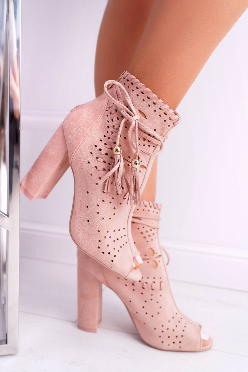 Botki Damskie Na Słupku Zamszowe Różowe Corinne