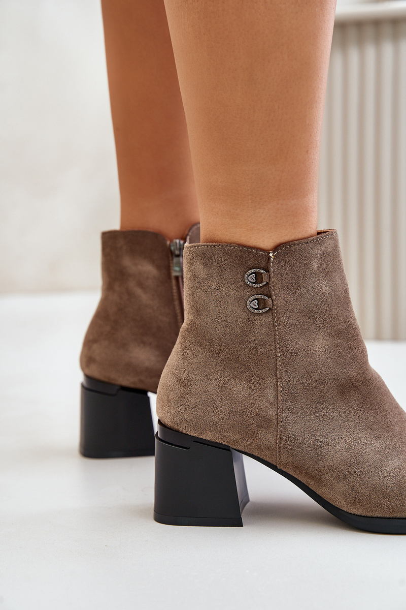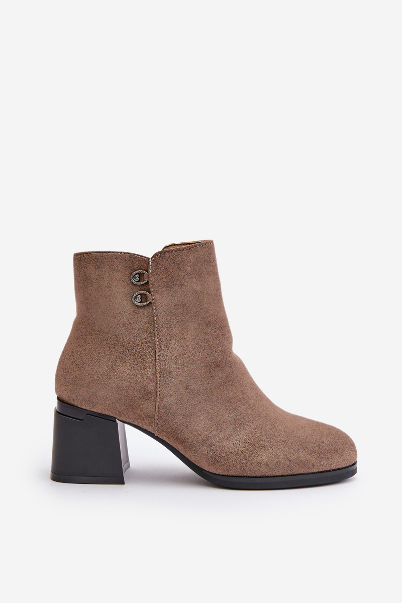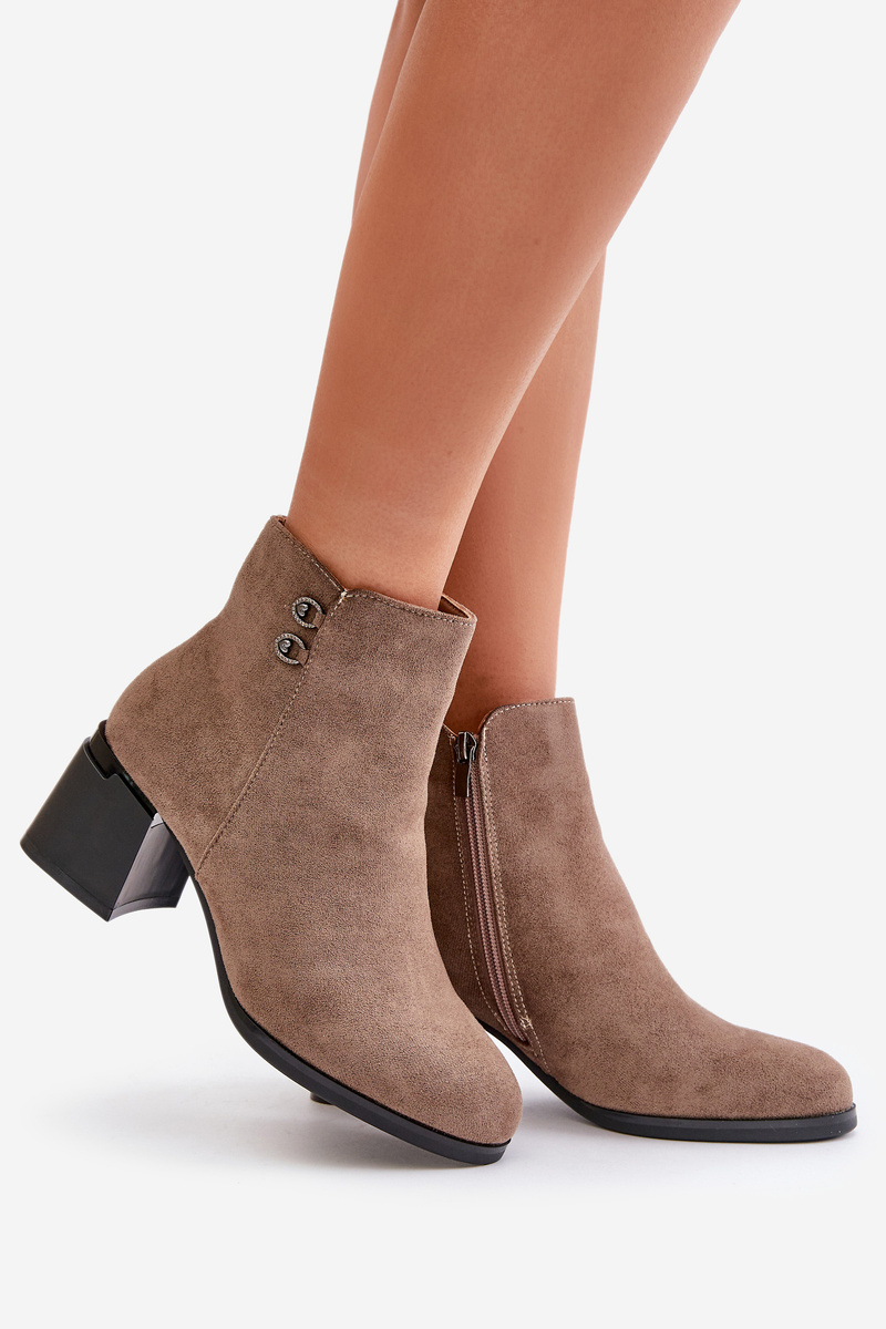 Botki Damskie Na Słupku Zapinane Na Zamek Ciemnobeżowe Tinamar