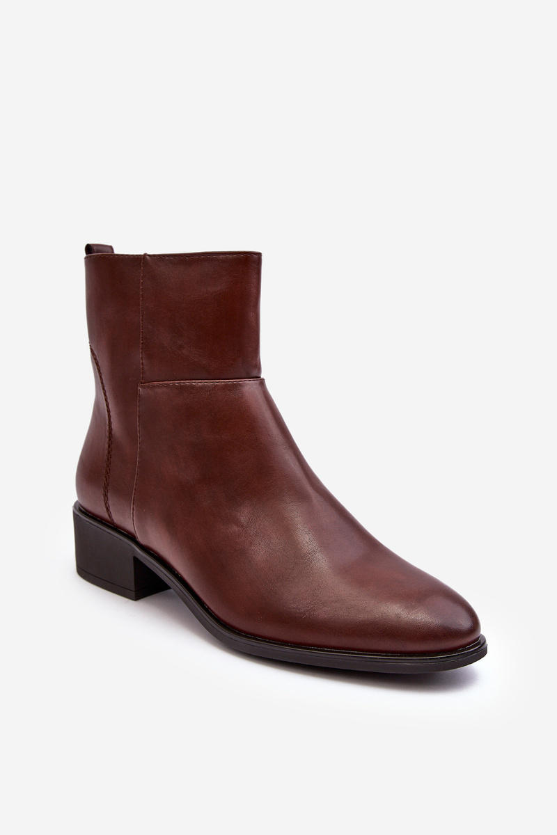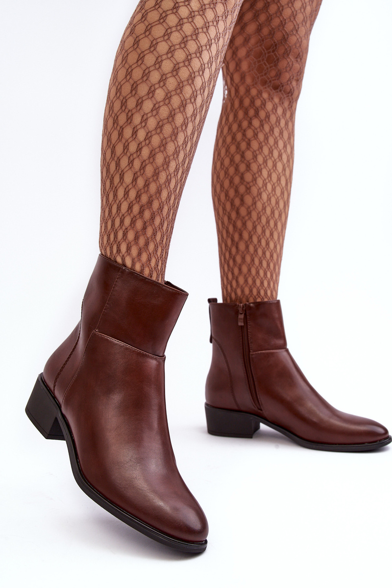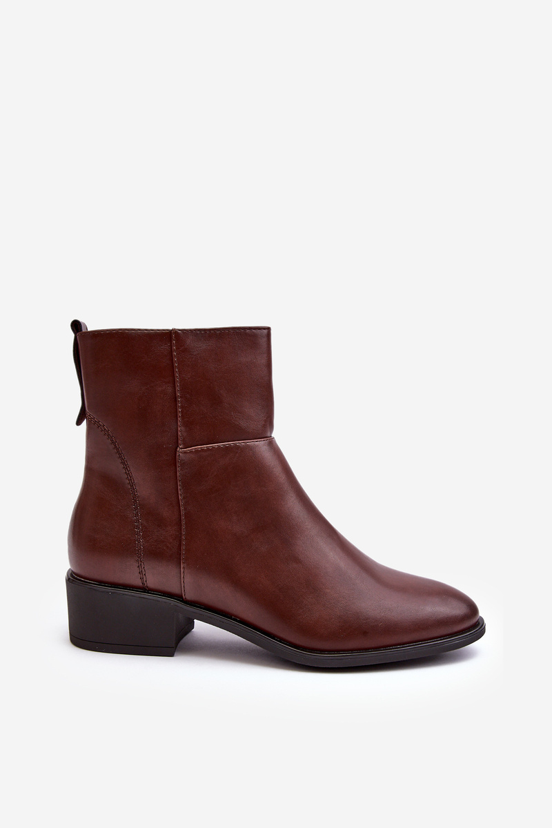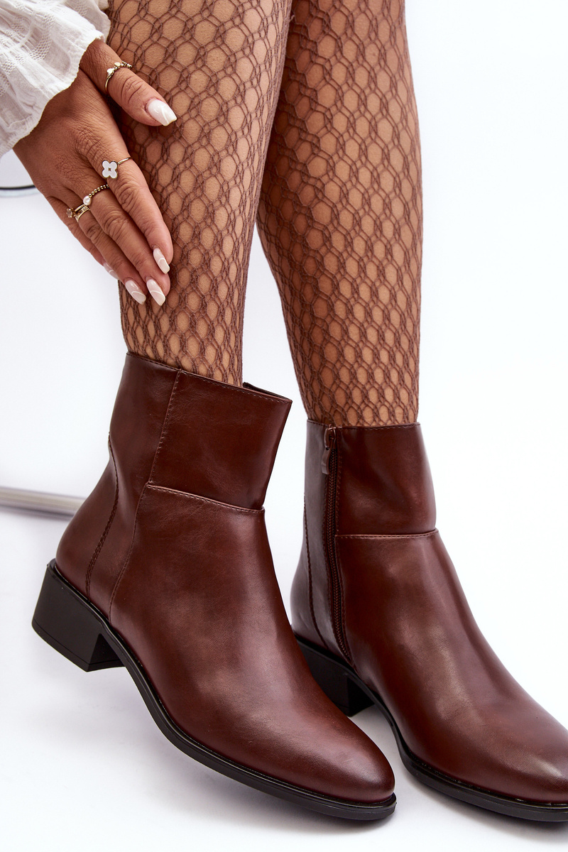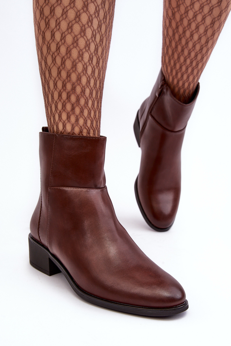 Botki Damskie Na Suwak Skóra Brązowe Semotti BT595