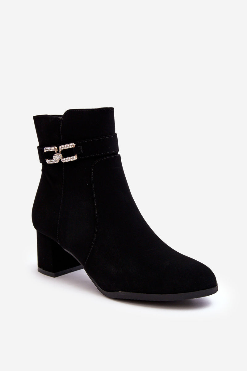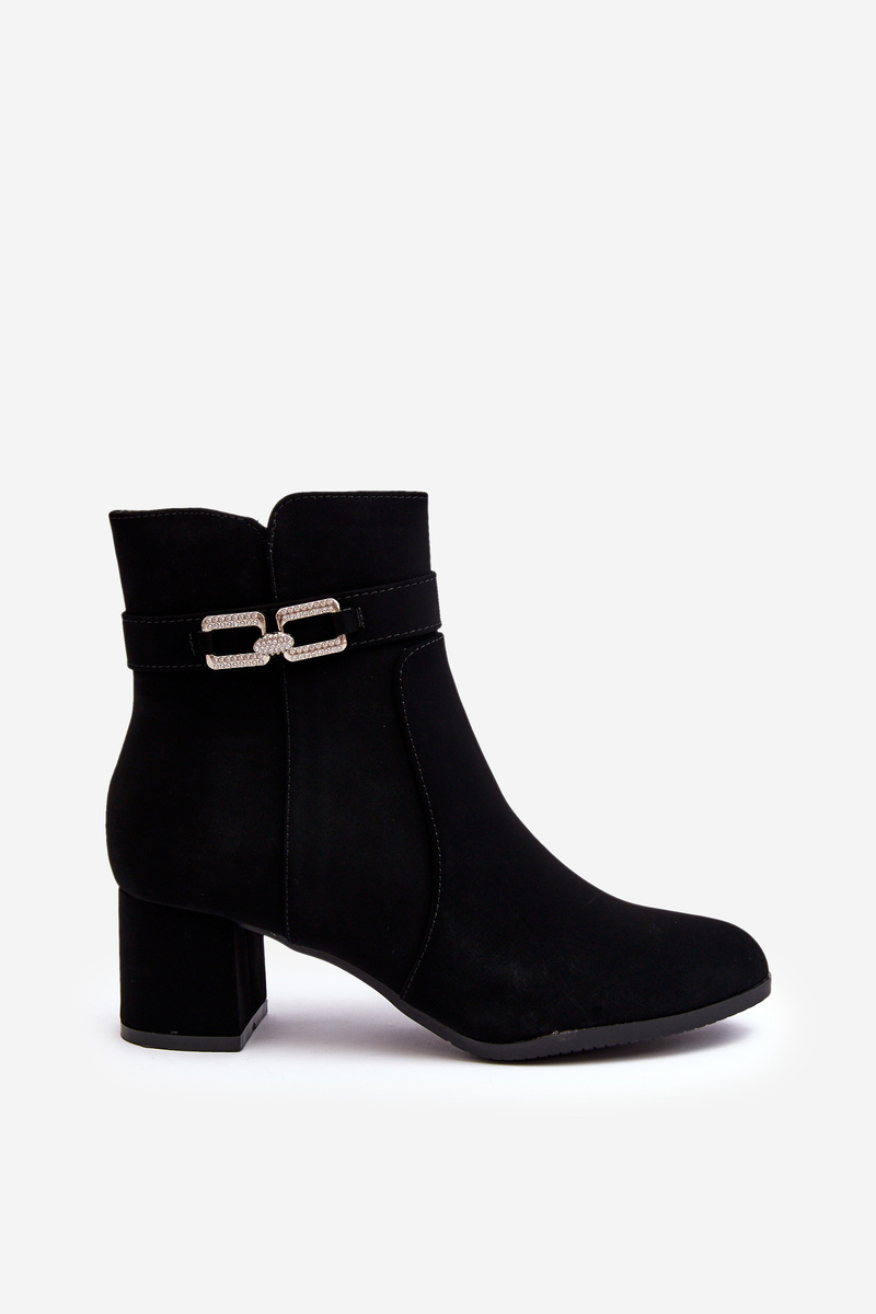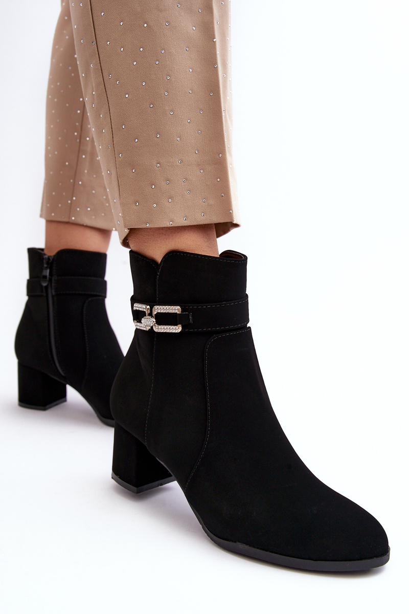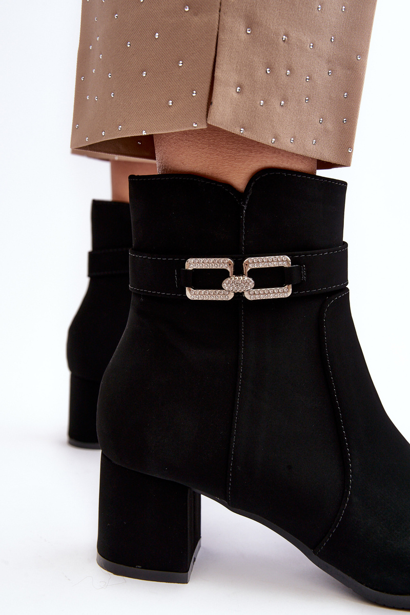 Botki Damskie Niski Obcas Ozdoba Czarne Numissa S-1106