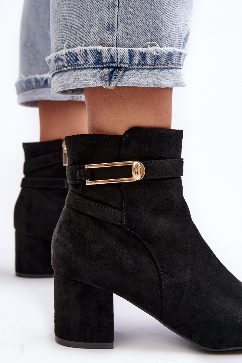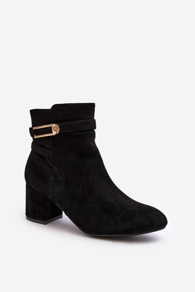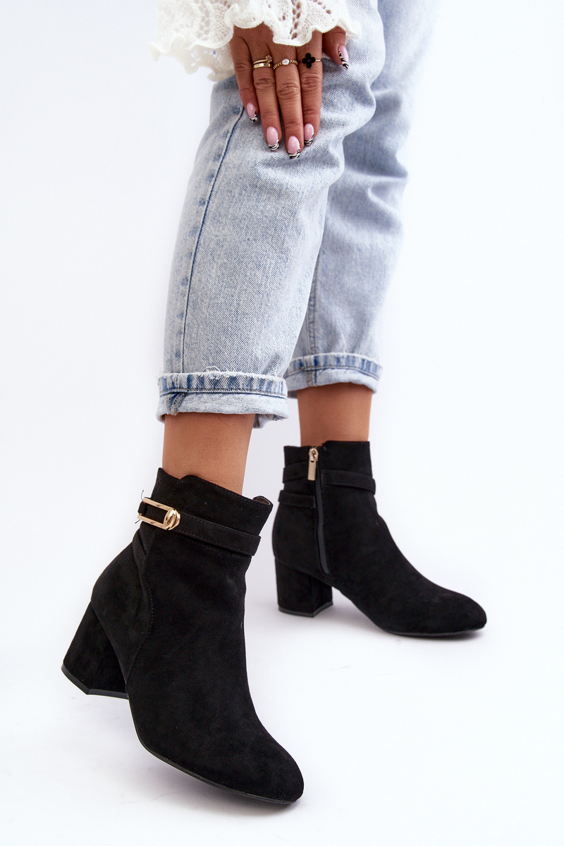 Botki Damskie Niski Obcas Słupek Czarne Verice 23BT35-6425