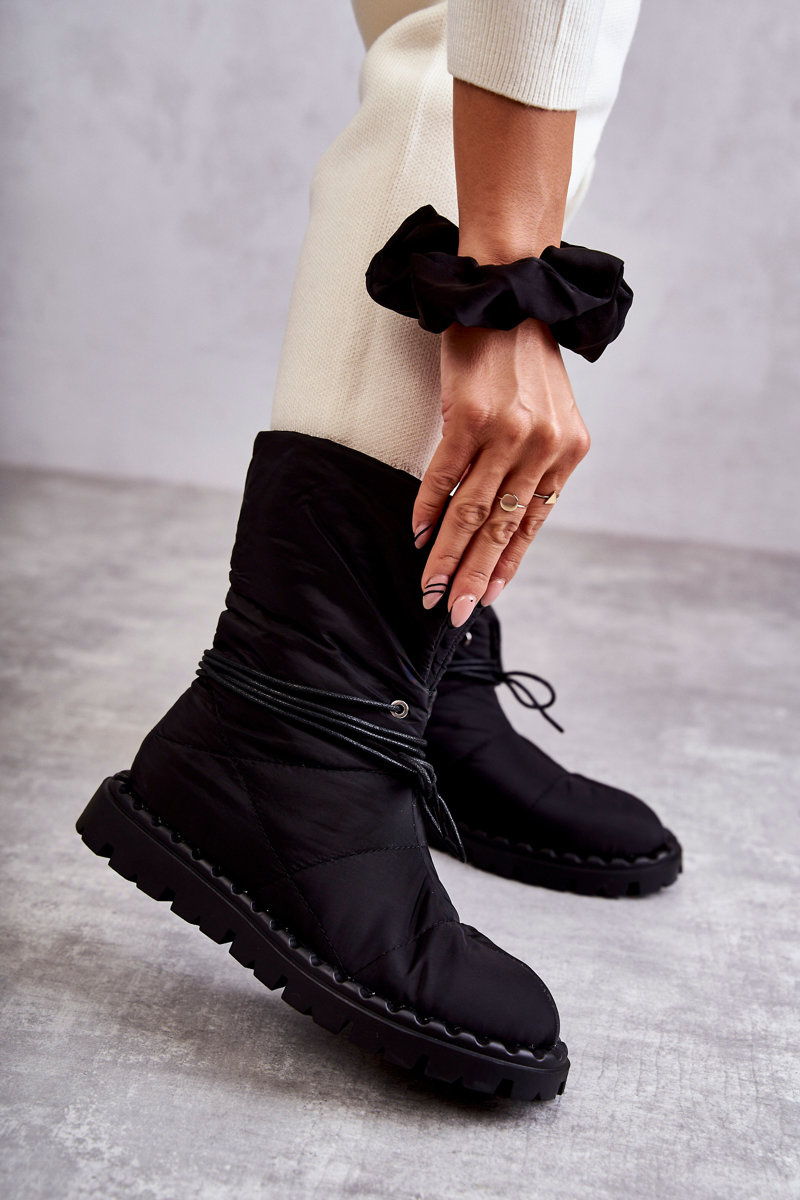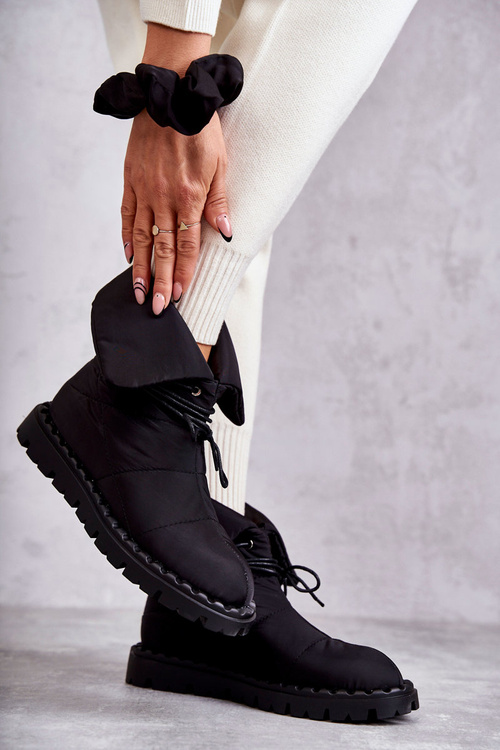 Botki Damskie Ocieplane Materiał Czarne Emelie