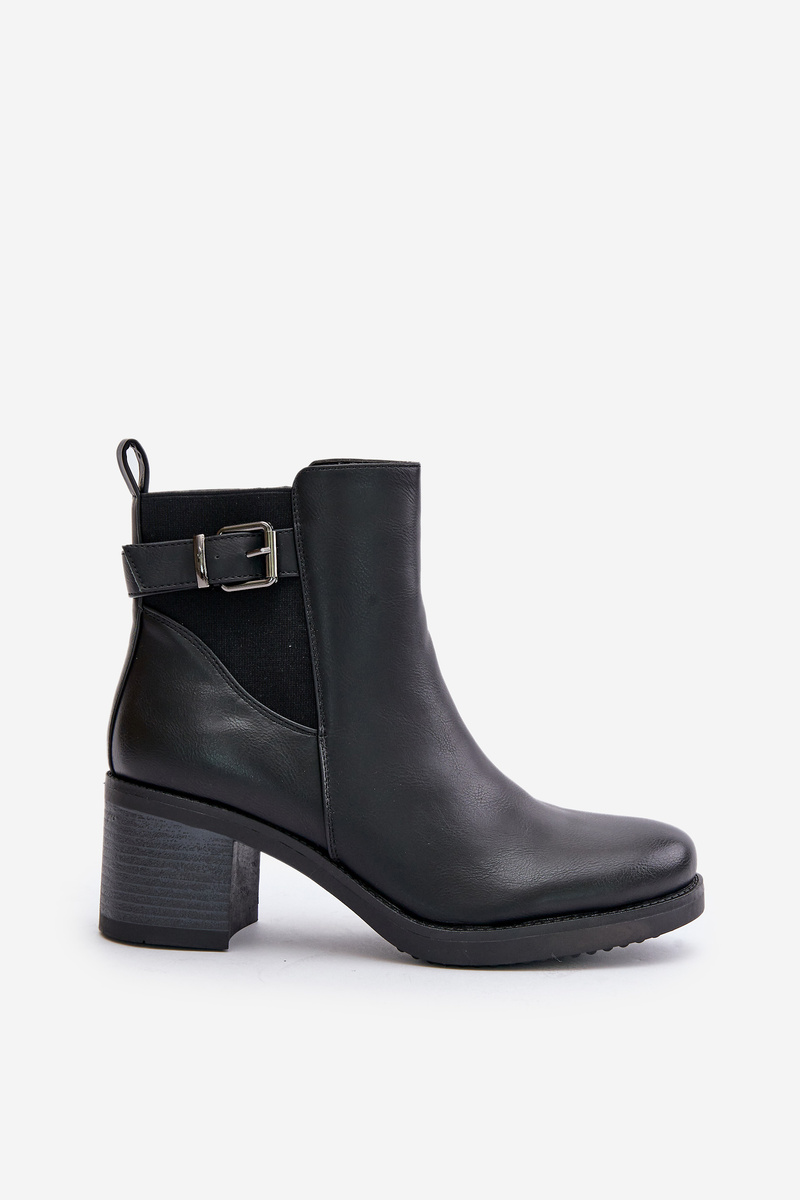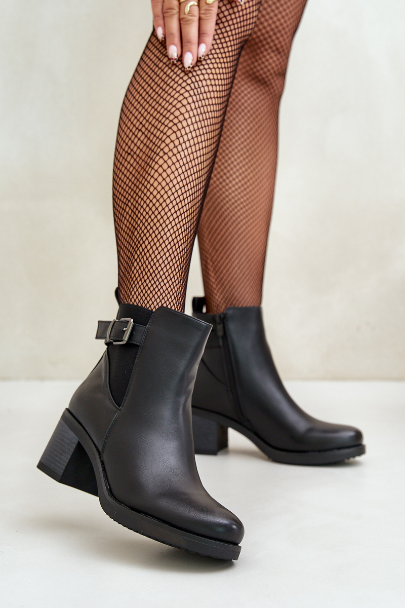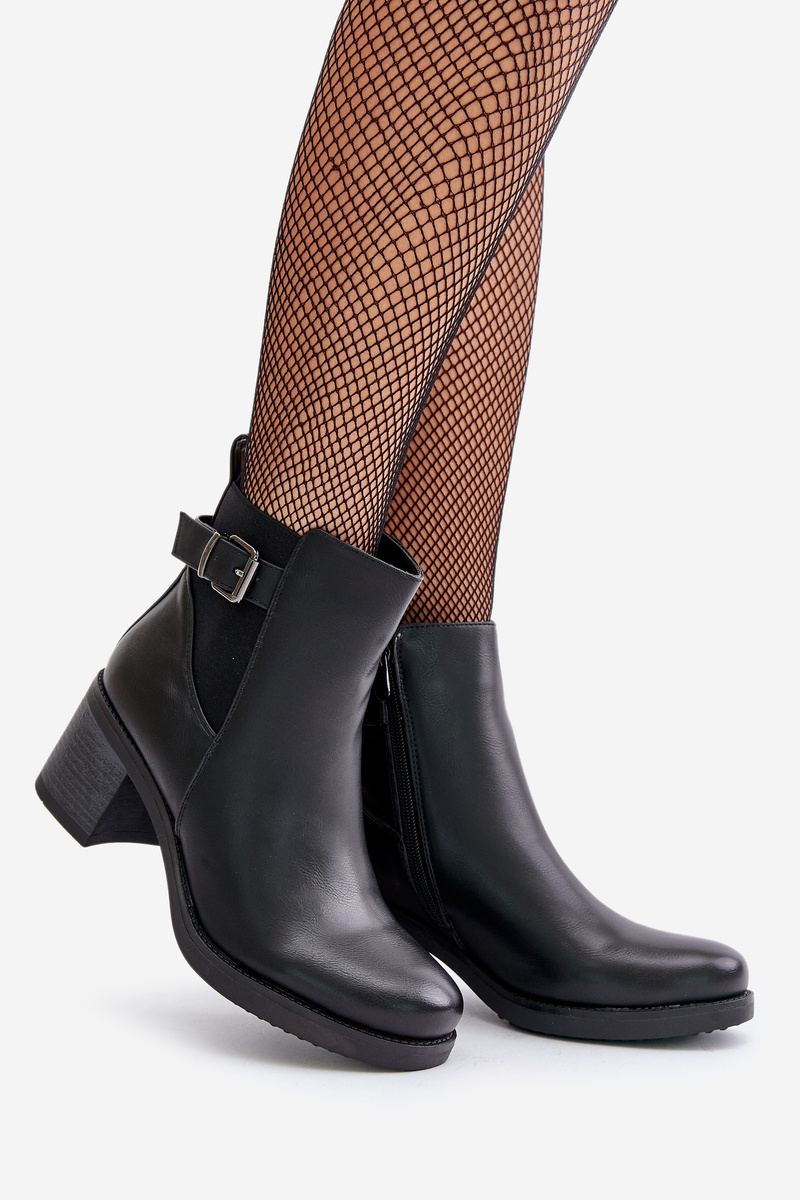 Botki Damskie Ocieplane Na Obcasie Eko Skóra Klamra Czarne Eriliana