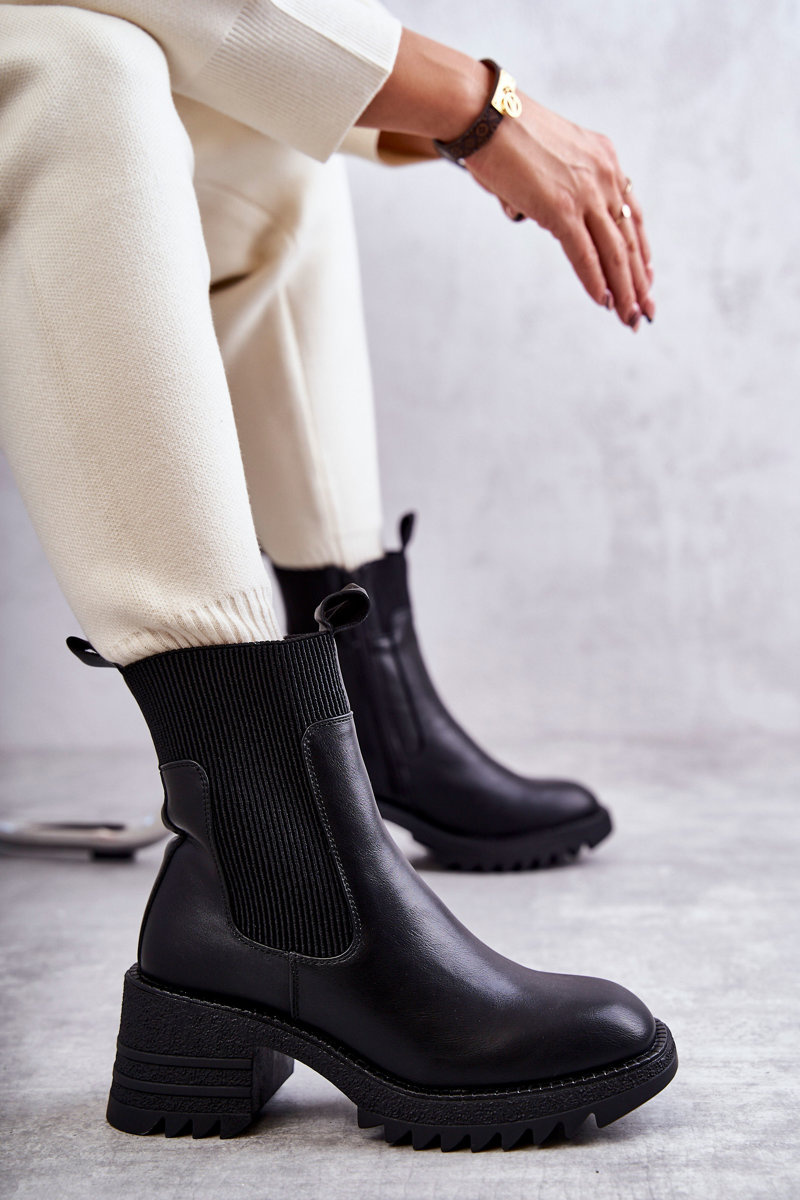 Botki Damskie Ocieplane Obcas Czarne Abella