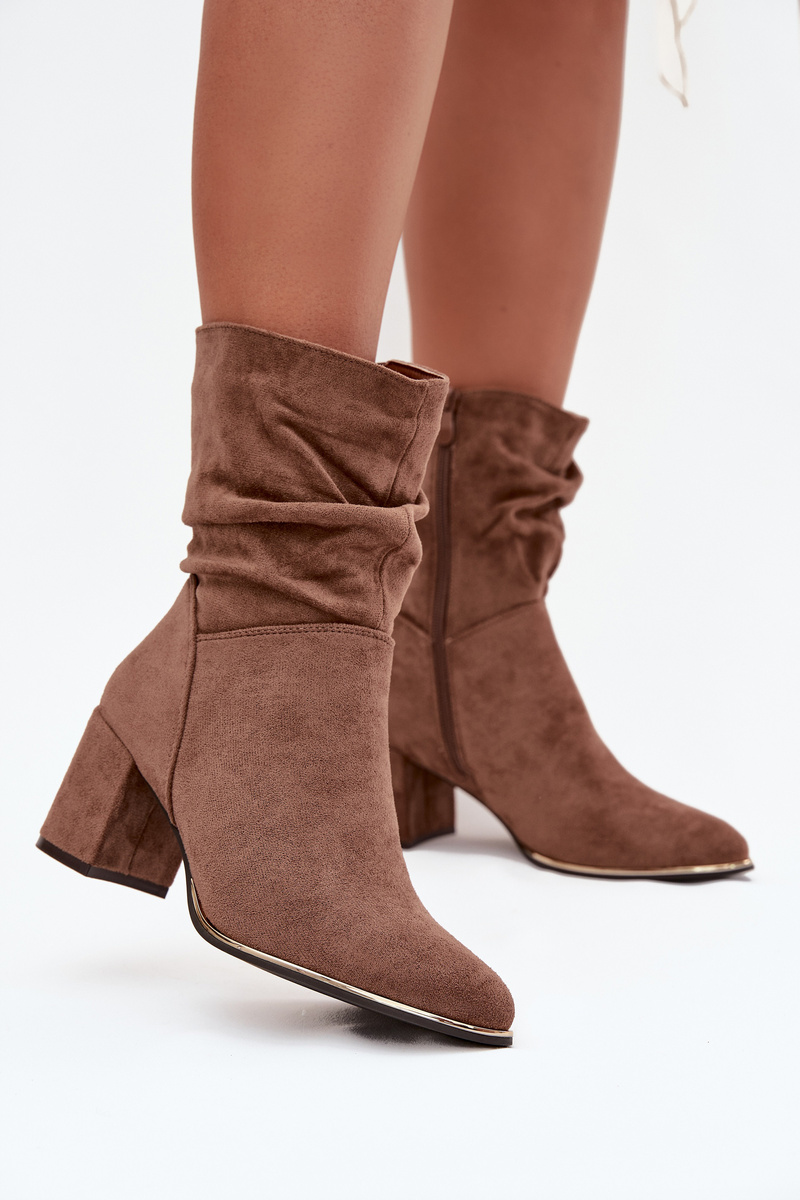 Botki Damskie Ocieplane Obcas Słupek Marszczenie Brązowe Ivressa