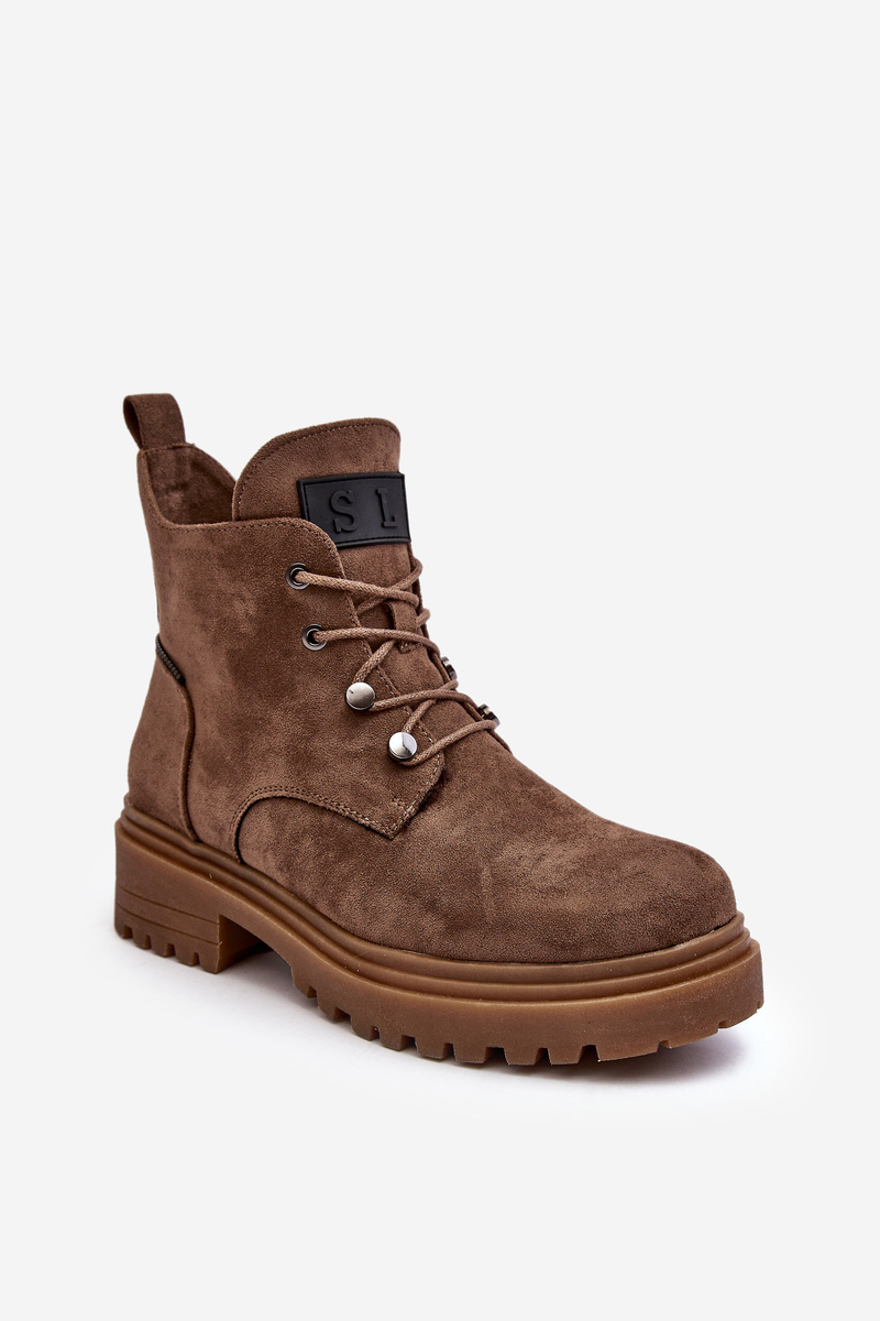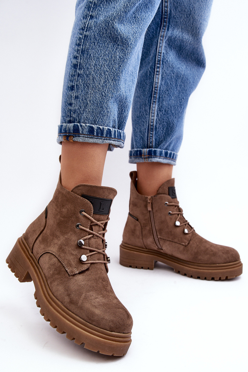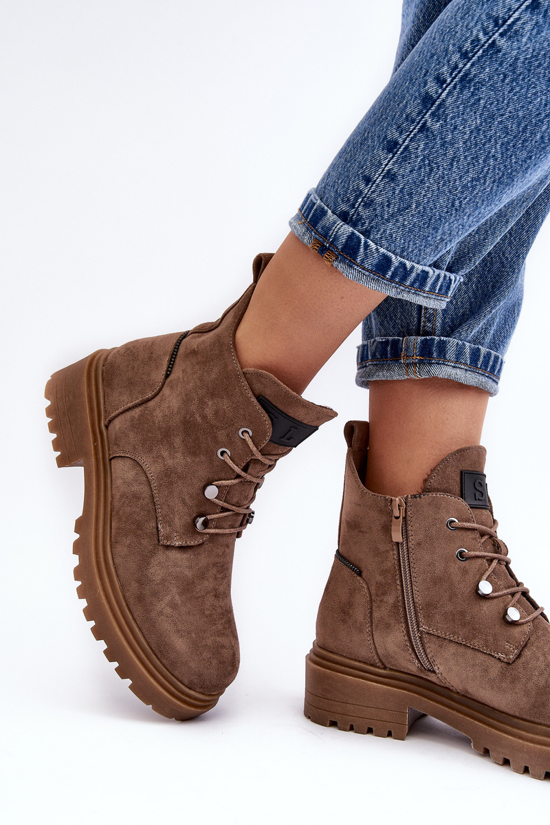 Botki Damskie Ocieplane Suwak Ciemnobeżowe Cameronia TR796