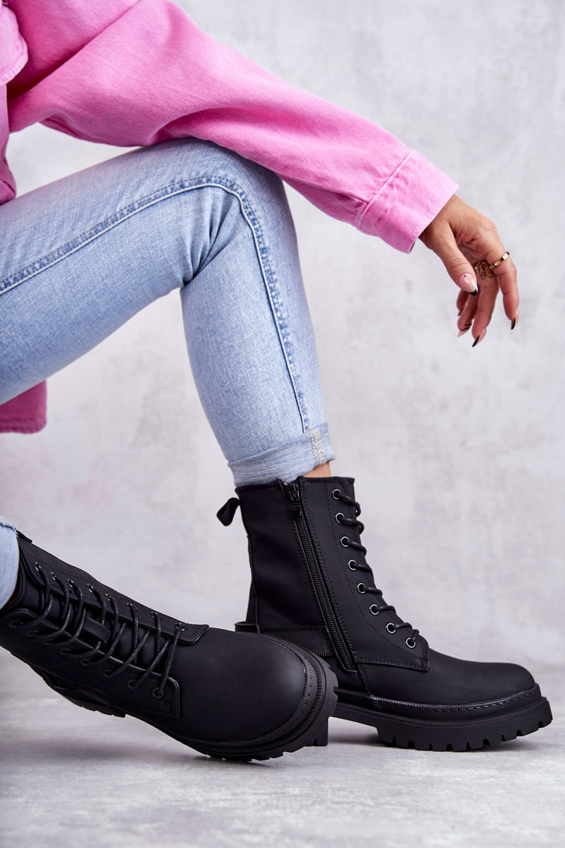 Botki Damskie Ocieplane Suwak Czarne Fabiola