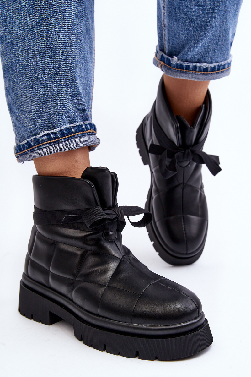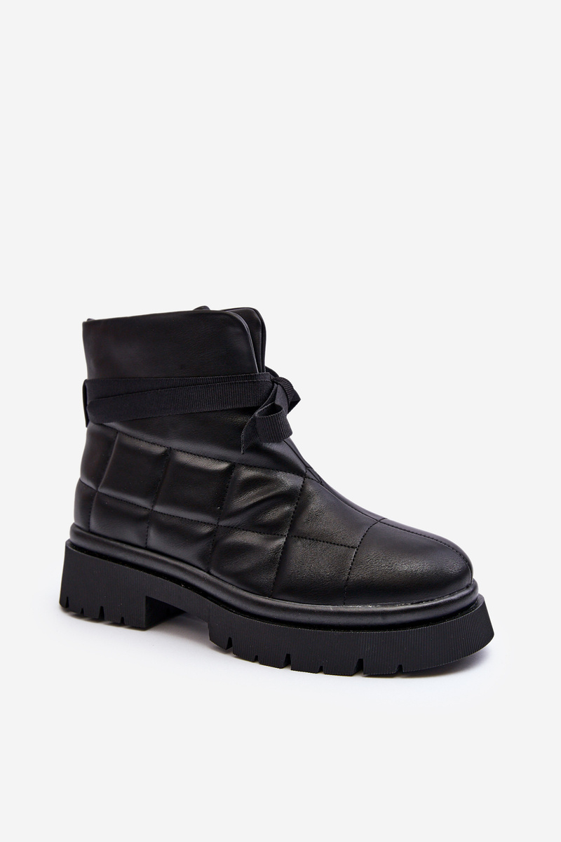 Botki Damskie Pikowane Wiązane Czarne Bizzanti NS307