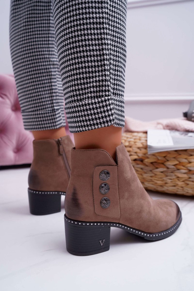 Botki Damskie Płaski Obcas Beżowe Tristram