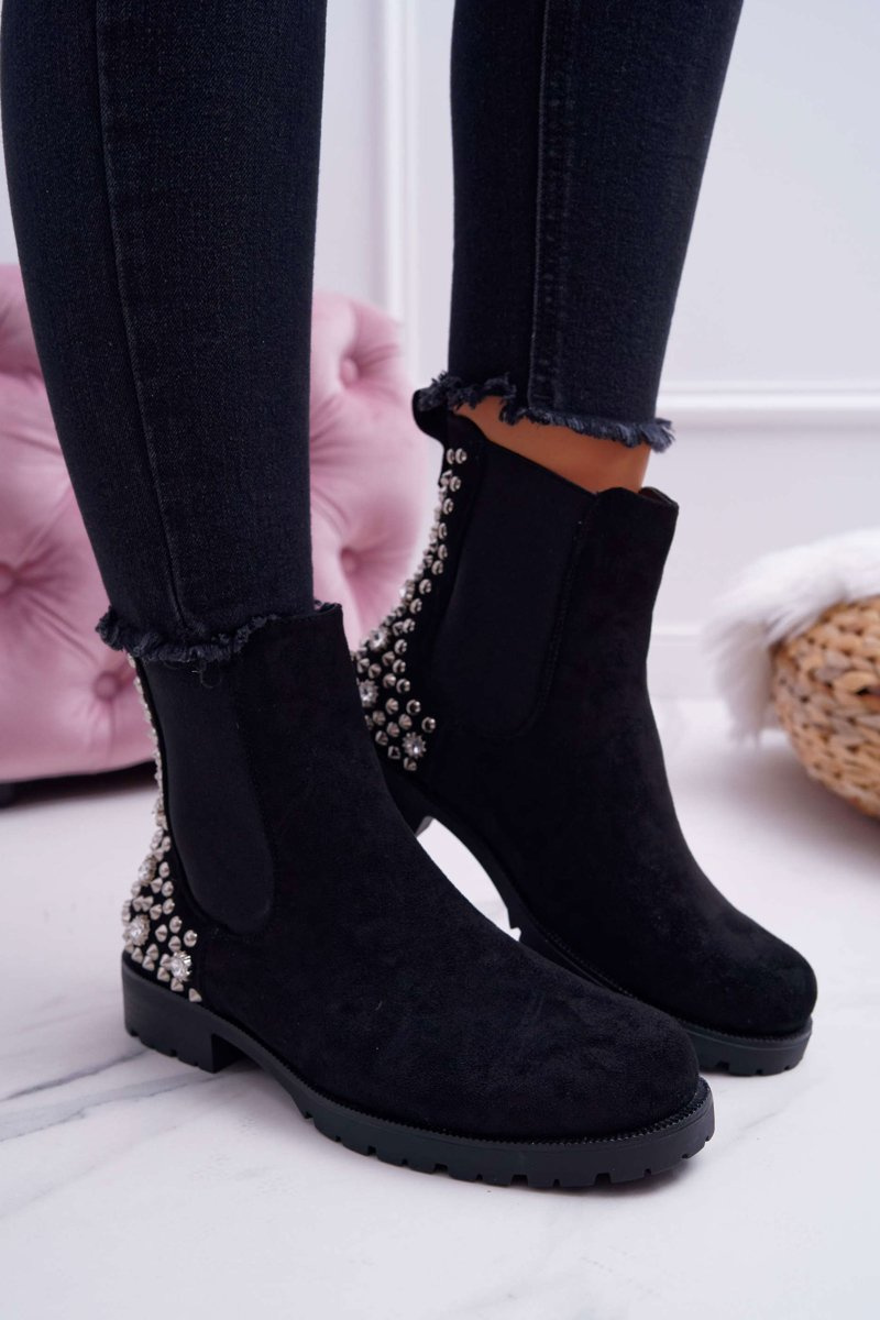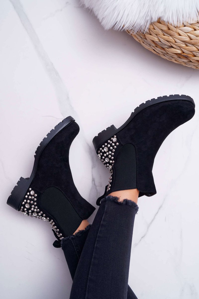 Botki Damskie Płaski Obcas Dżety Ćwieki Czarne Binary