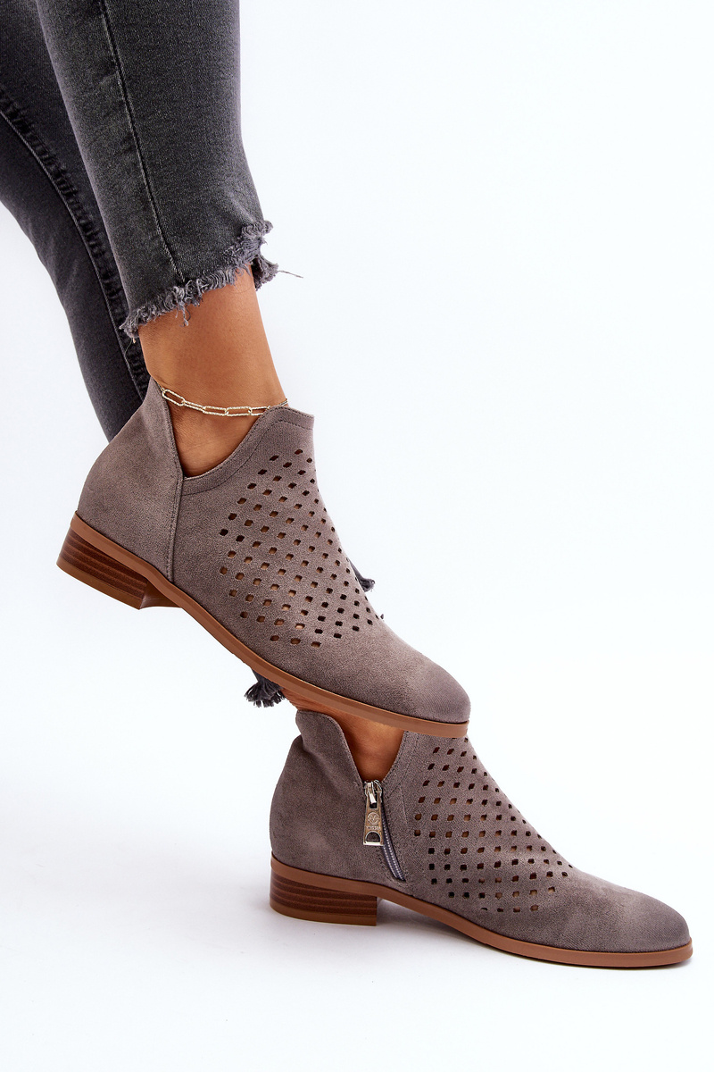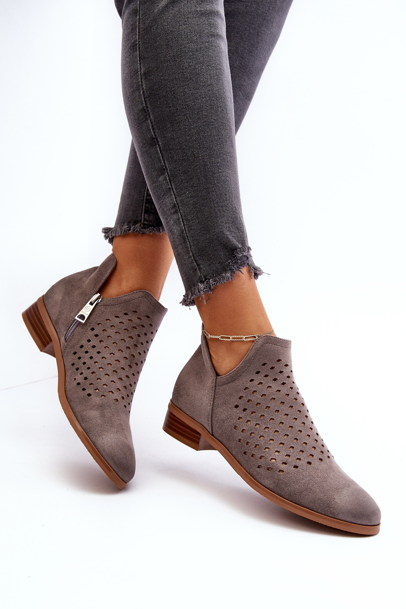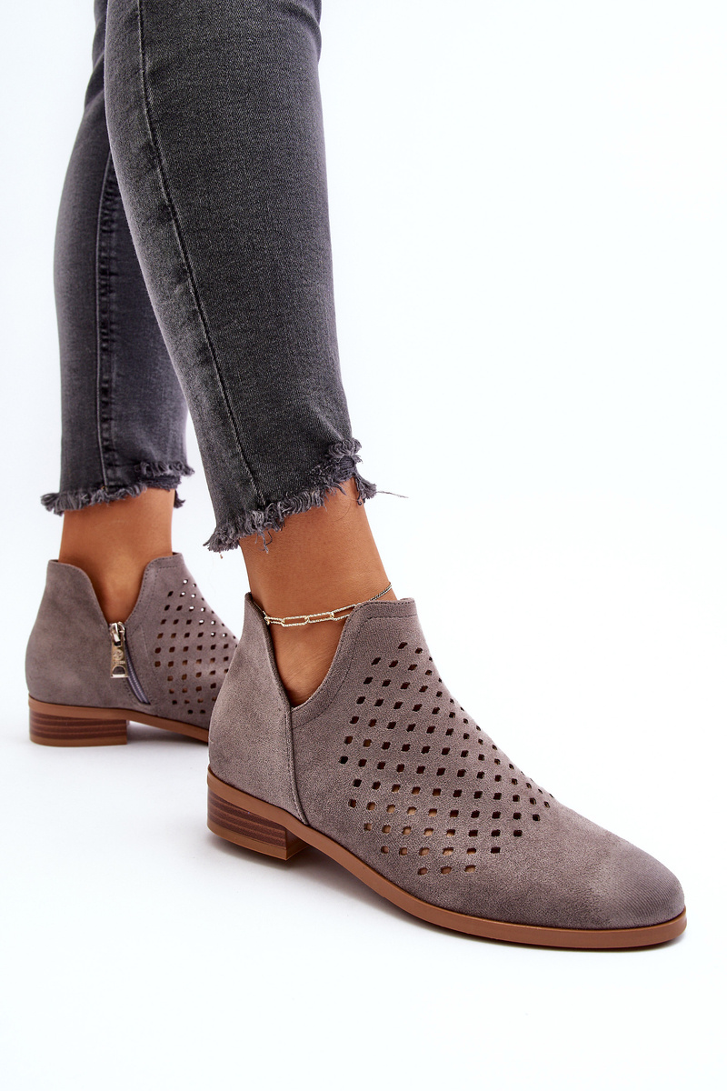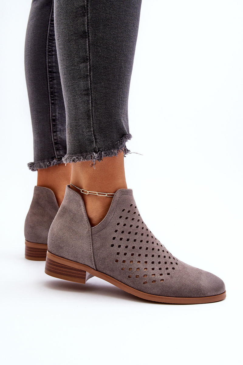 Botki Damskie Płaski Obcas Eko Zamsz Niskie Szare Janetris 58240