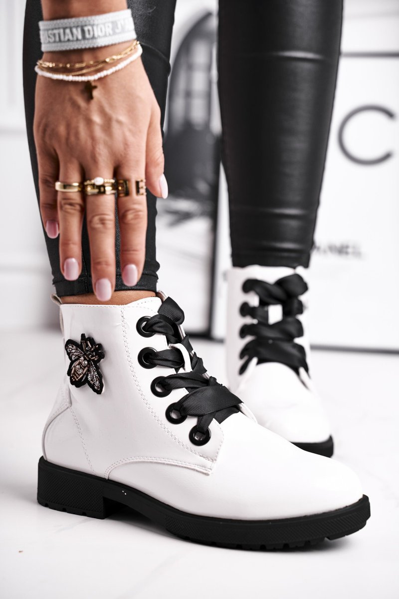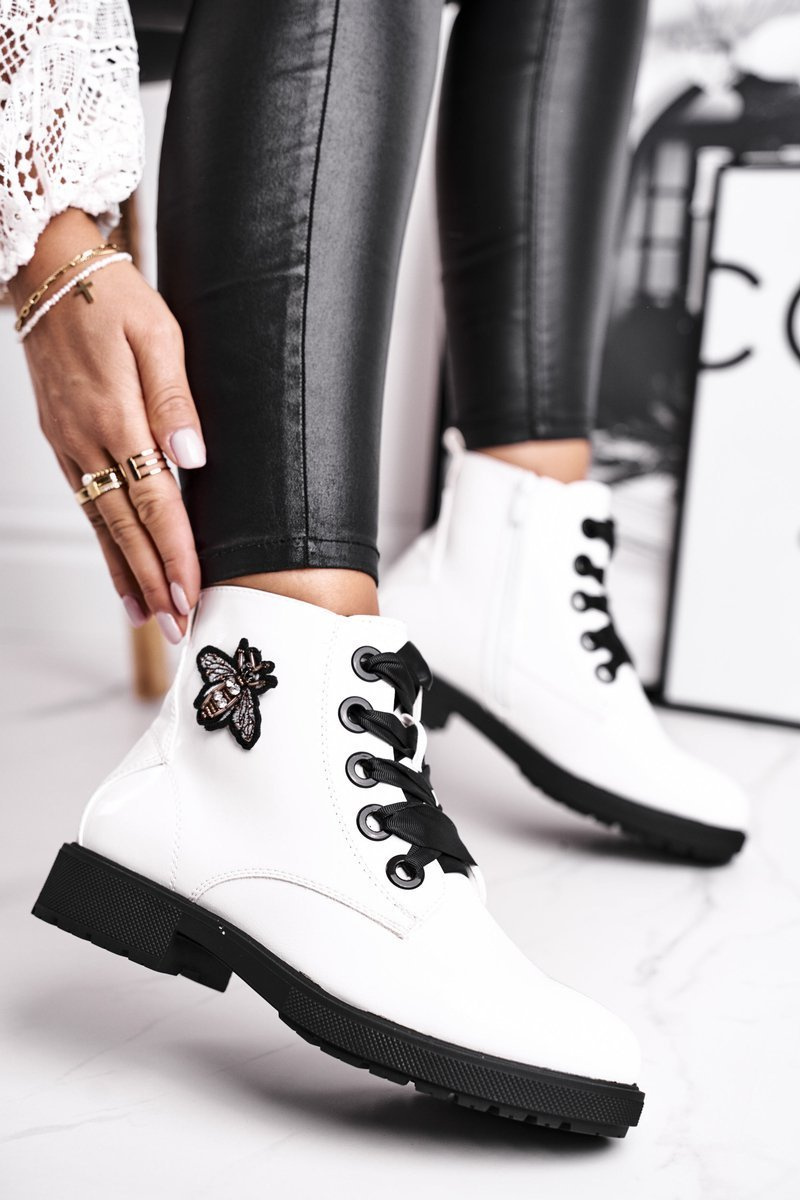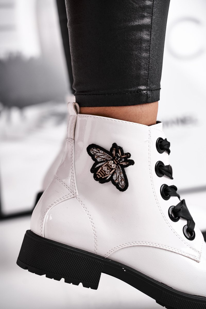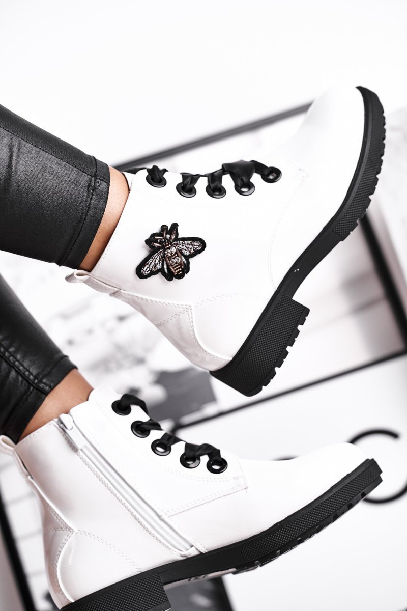 Opinie o Botki Damskie Płaski Obcas Glany Lakierowane Białe Sergio Leone BT530