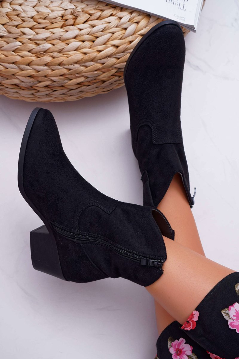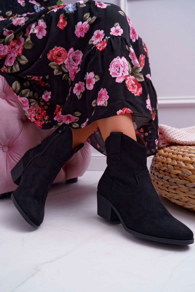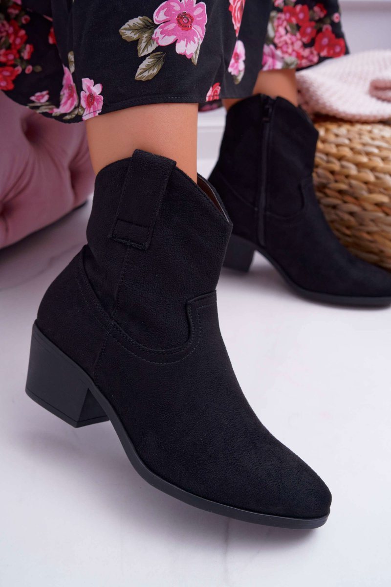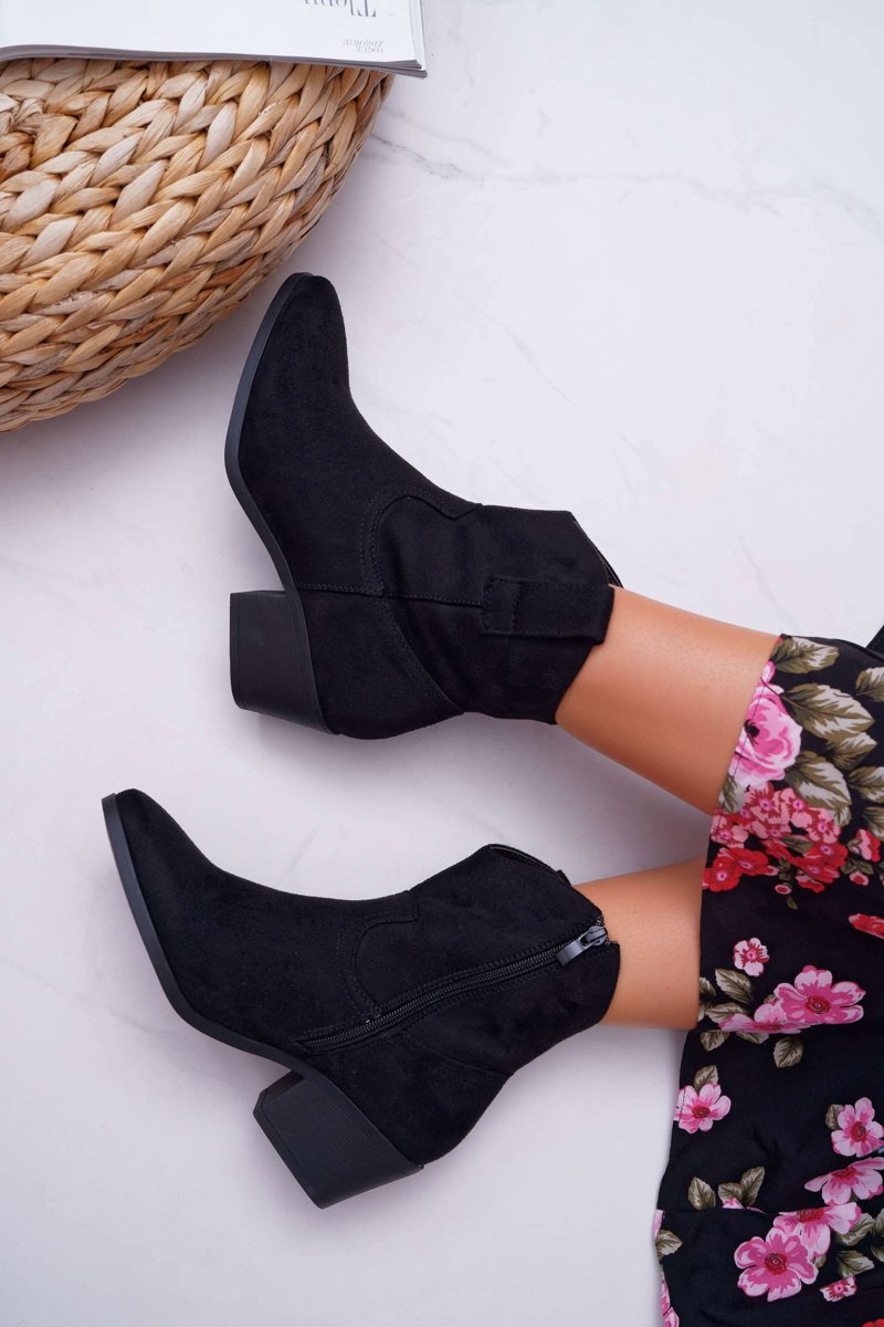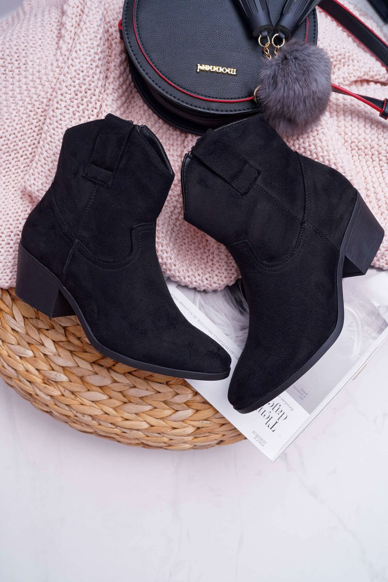 Botki Damskie Płaski Obcas Kowbojki Czarne Telifa