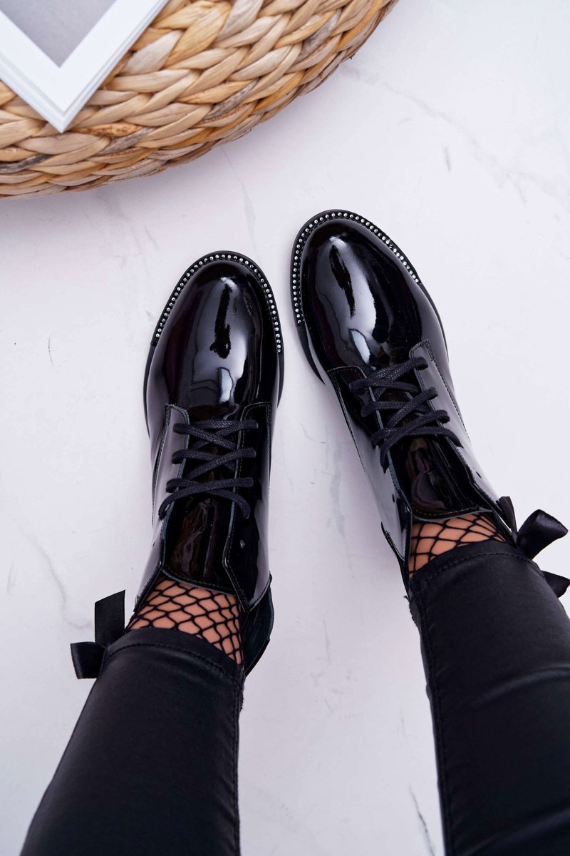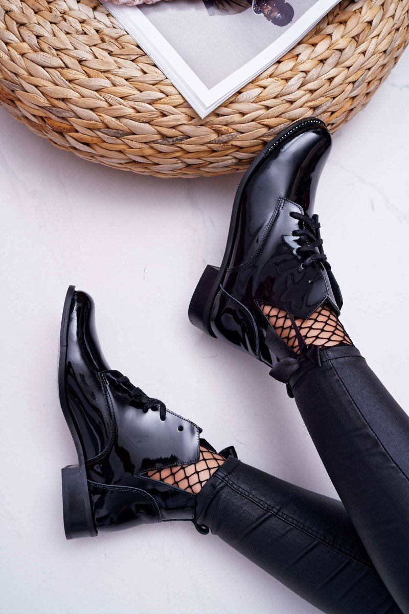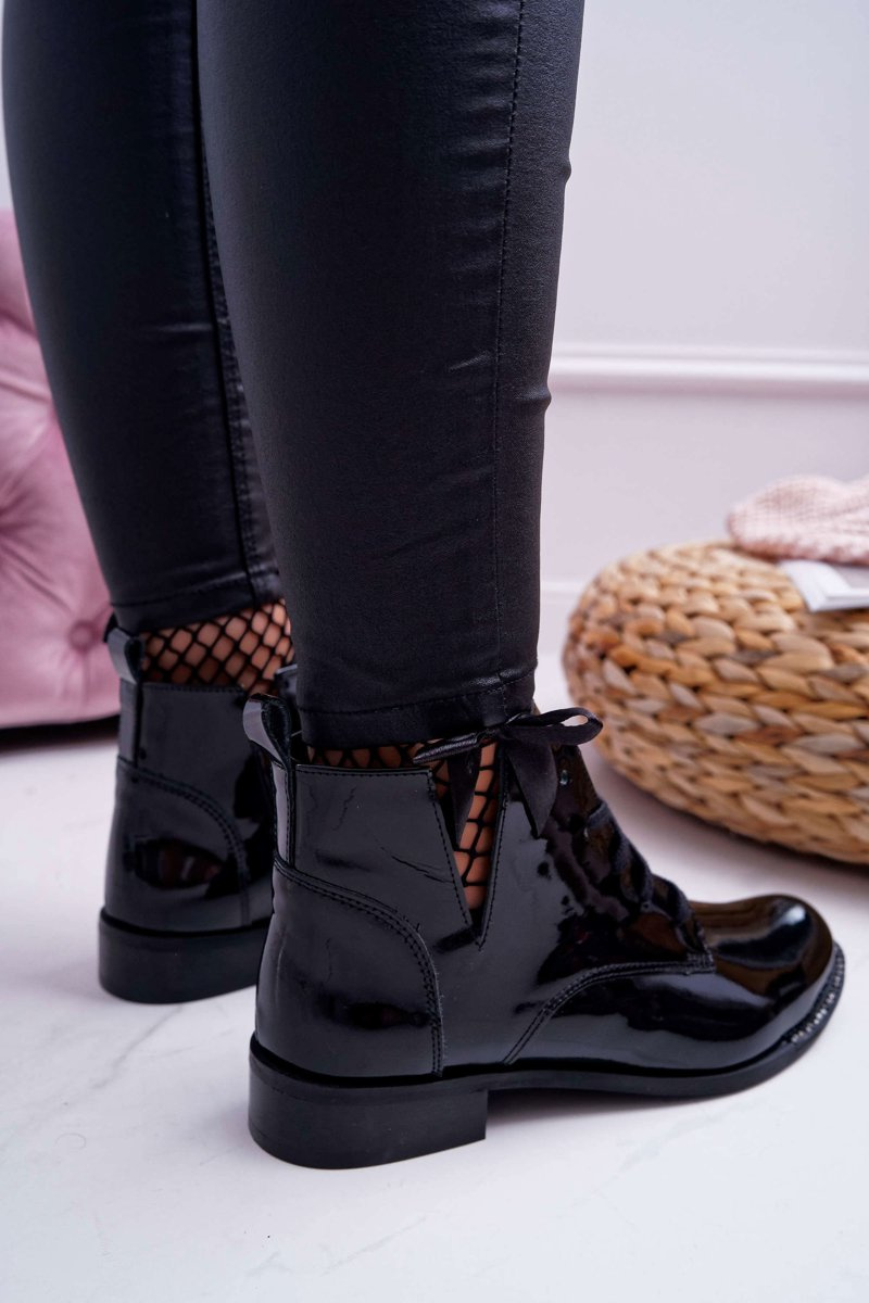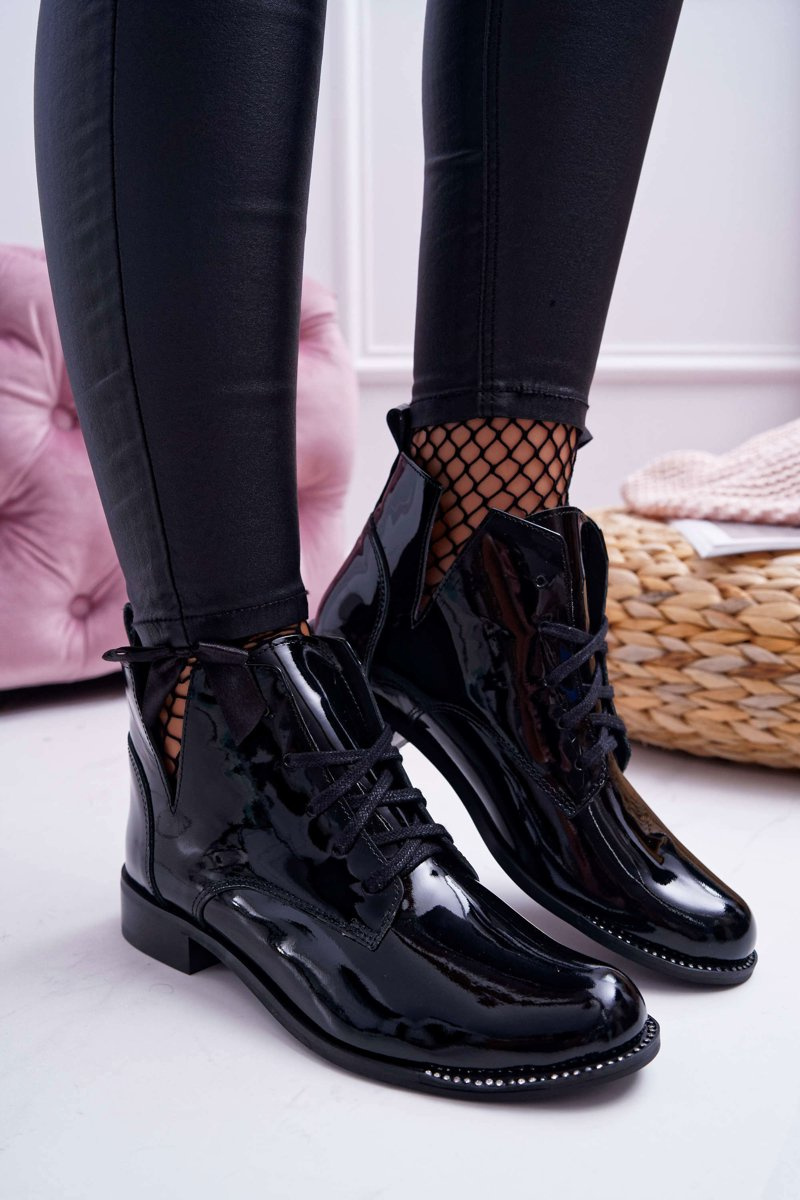 Botki Damskie Płaski Obcas Lakierowane Czarne Nicole 2420