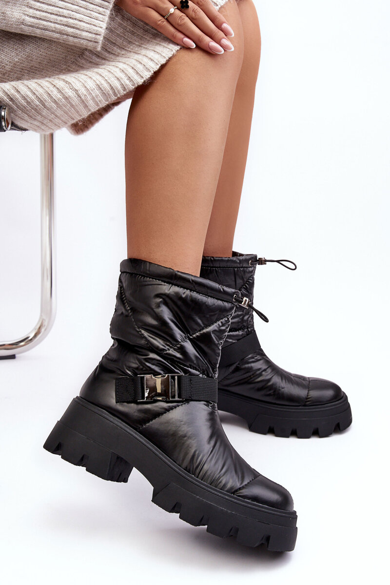 Botki Damskie Płaski Obcas Masywna Podeszwa Czarne Werikse JH21-22
