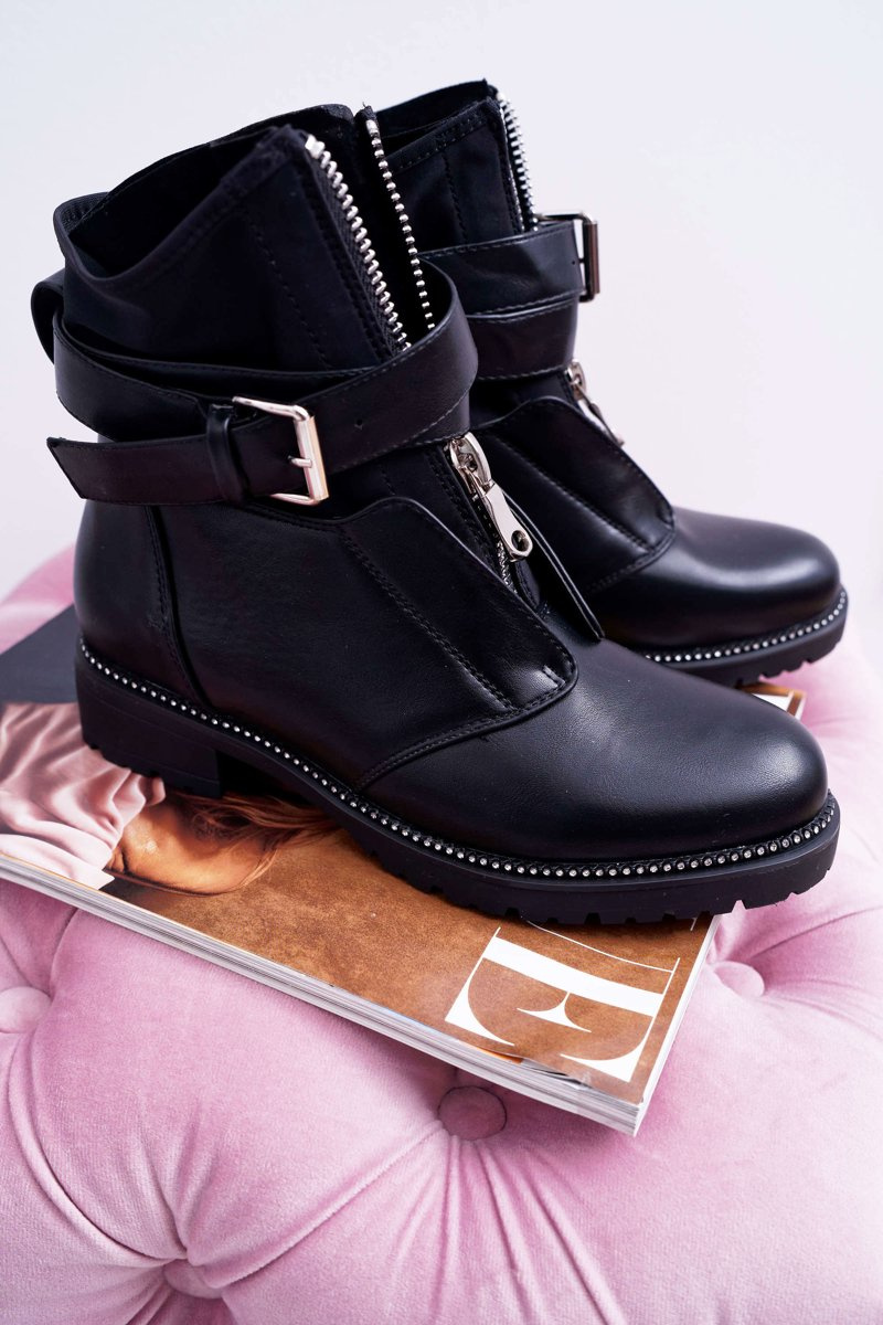 Opinie o Botki Damskie Płaski Obcas Militarne Czarne Travist