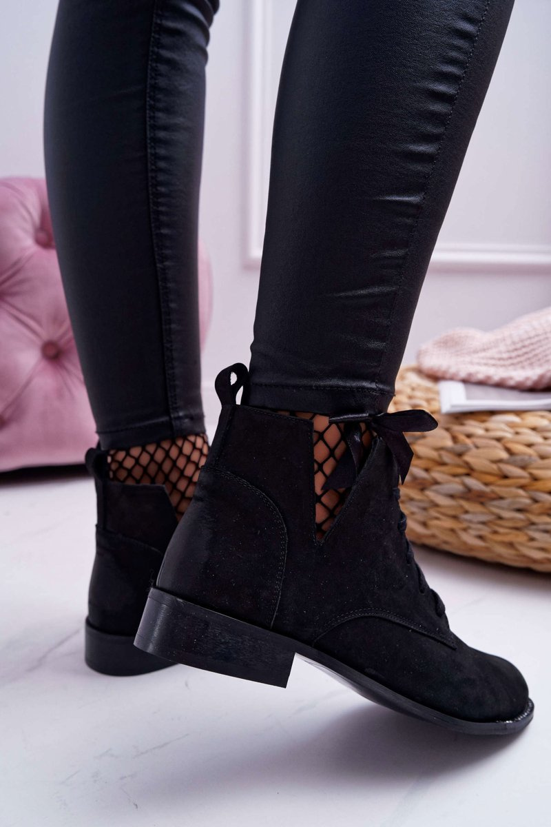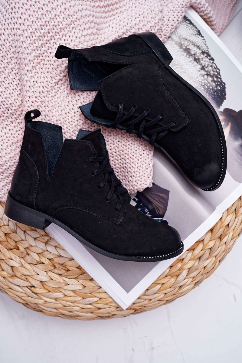 Botki Damskie Płaski Obcas Nubuk Czarne Nicole 2420