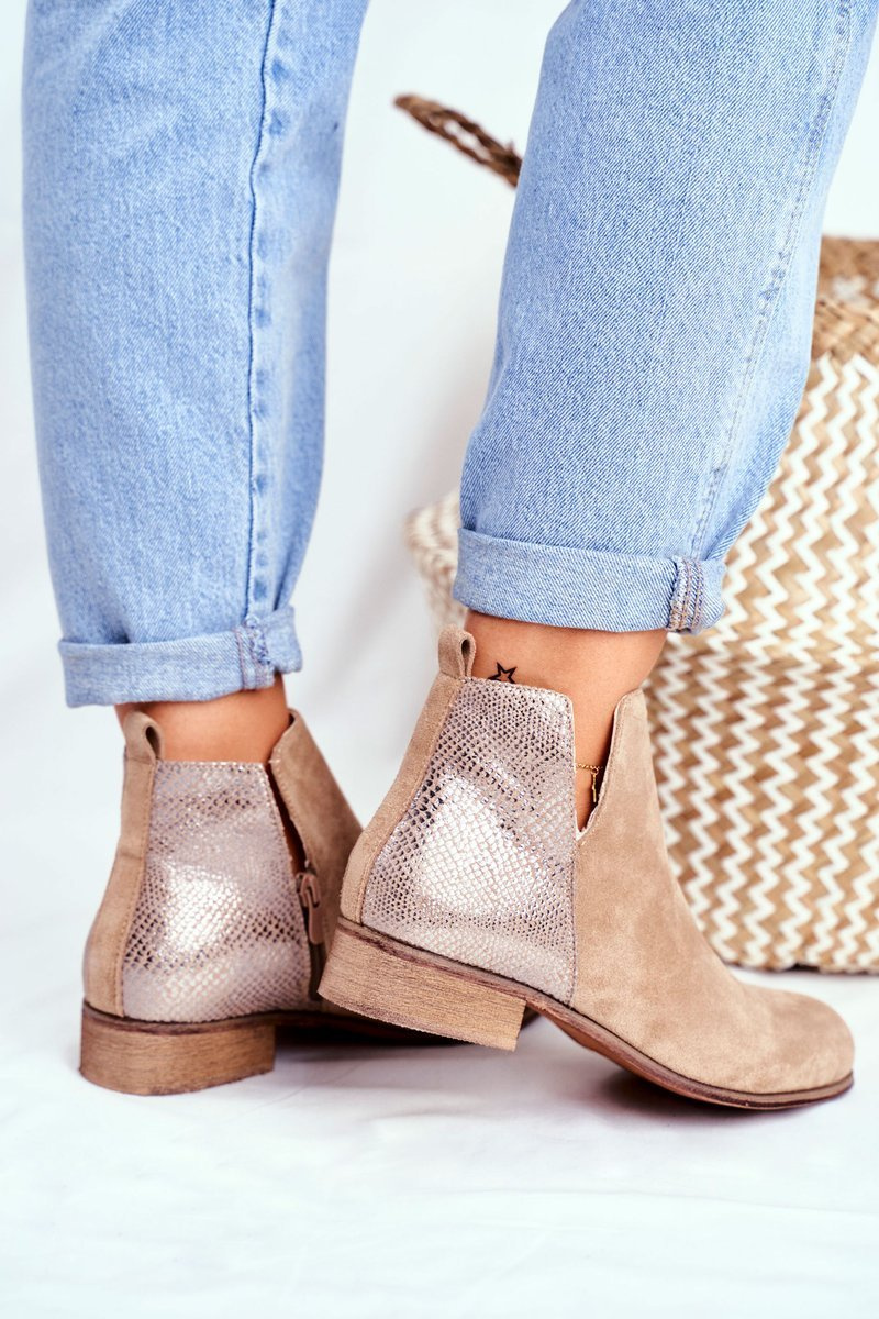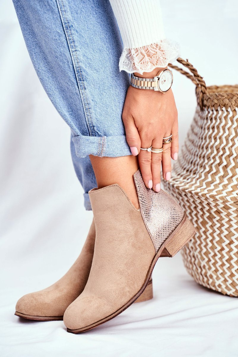 Botki Damskie Płaski Obcas Wiosenne Khaki Viva