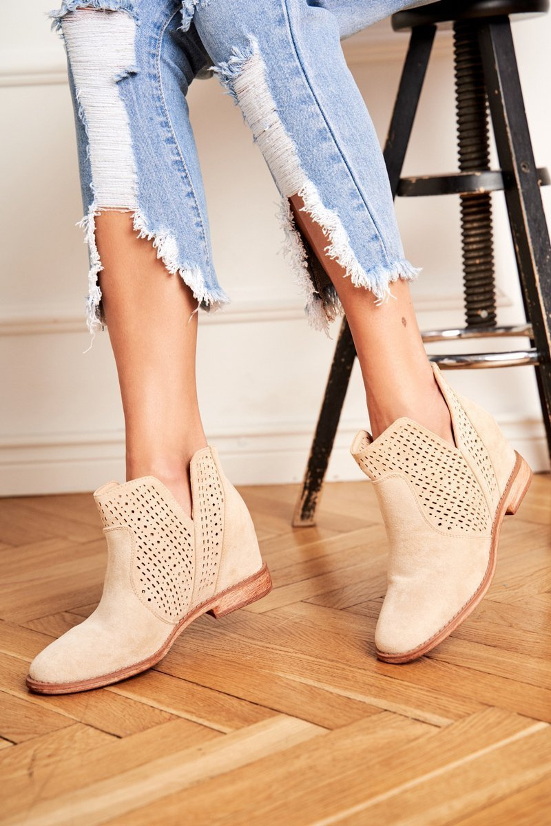 Botki Damskie Płaski Obcas Zamszowe Ażurowe Jasno Beżowe Shades