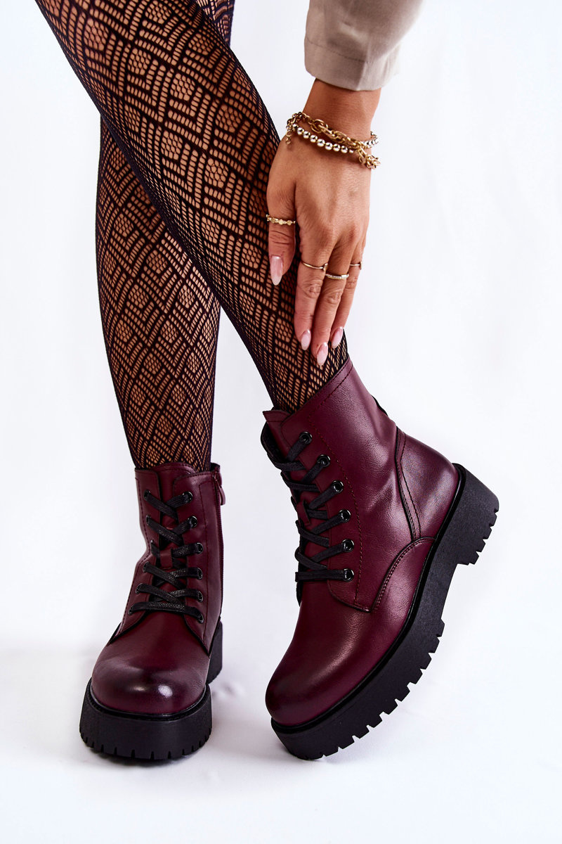 Botki Damskie Platforma Bordowe Randi