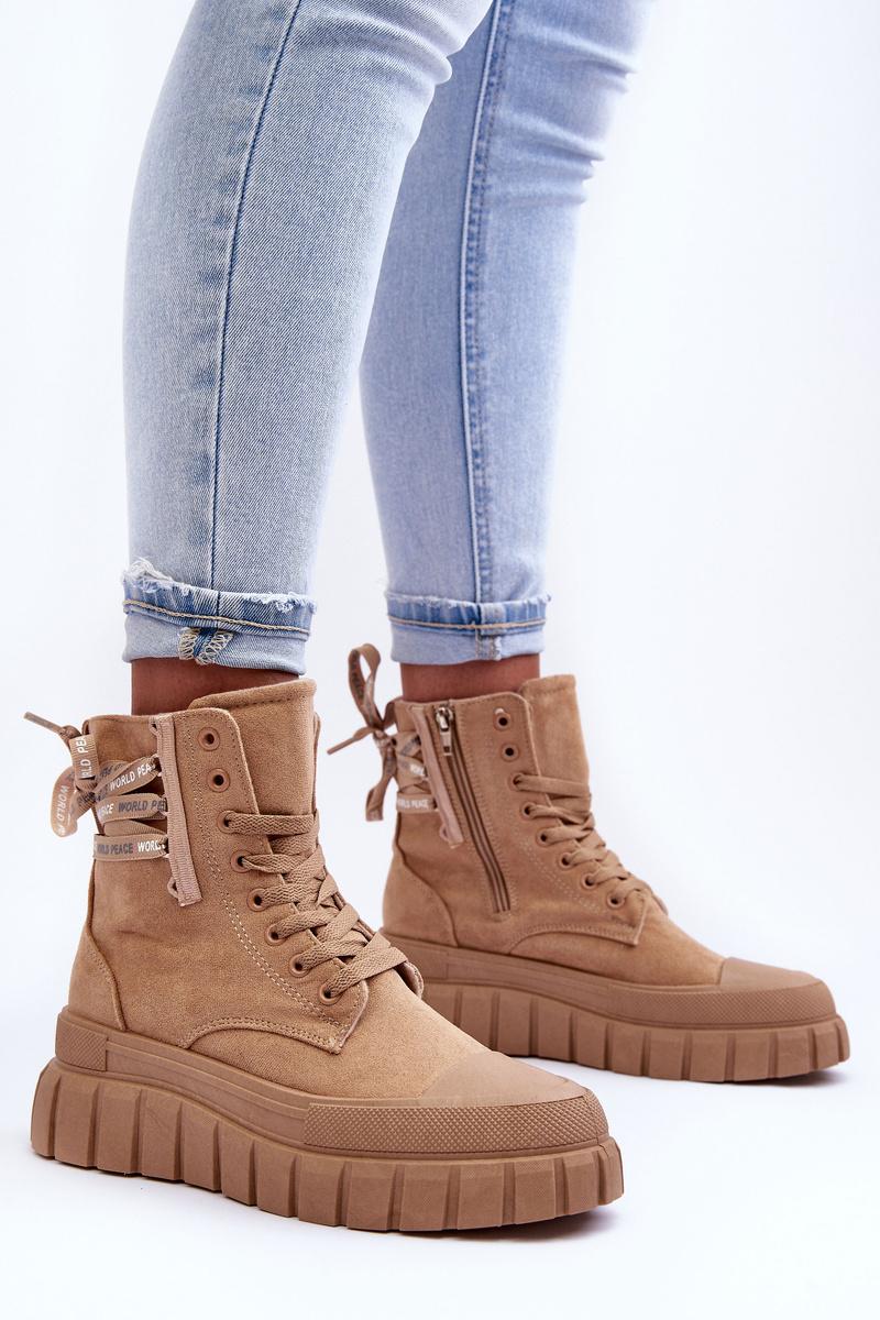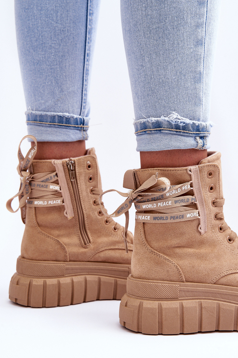 Botki Damskie Platforma Zamsz Beżowe Raftera EV-263