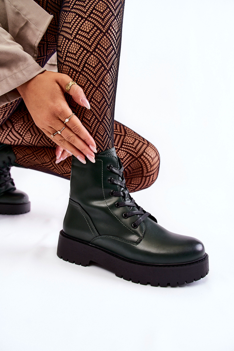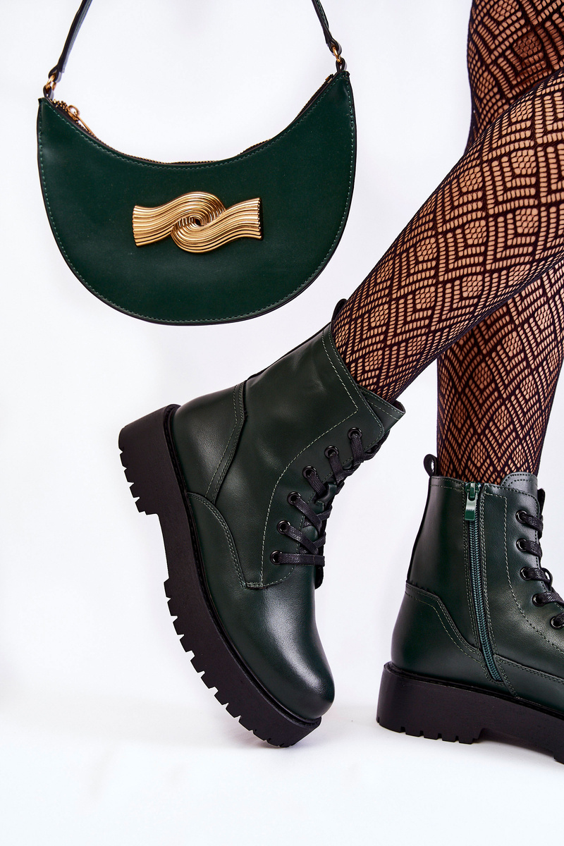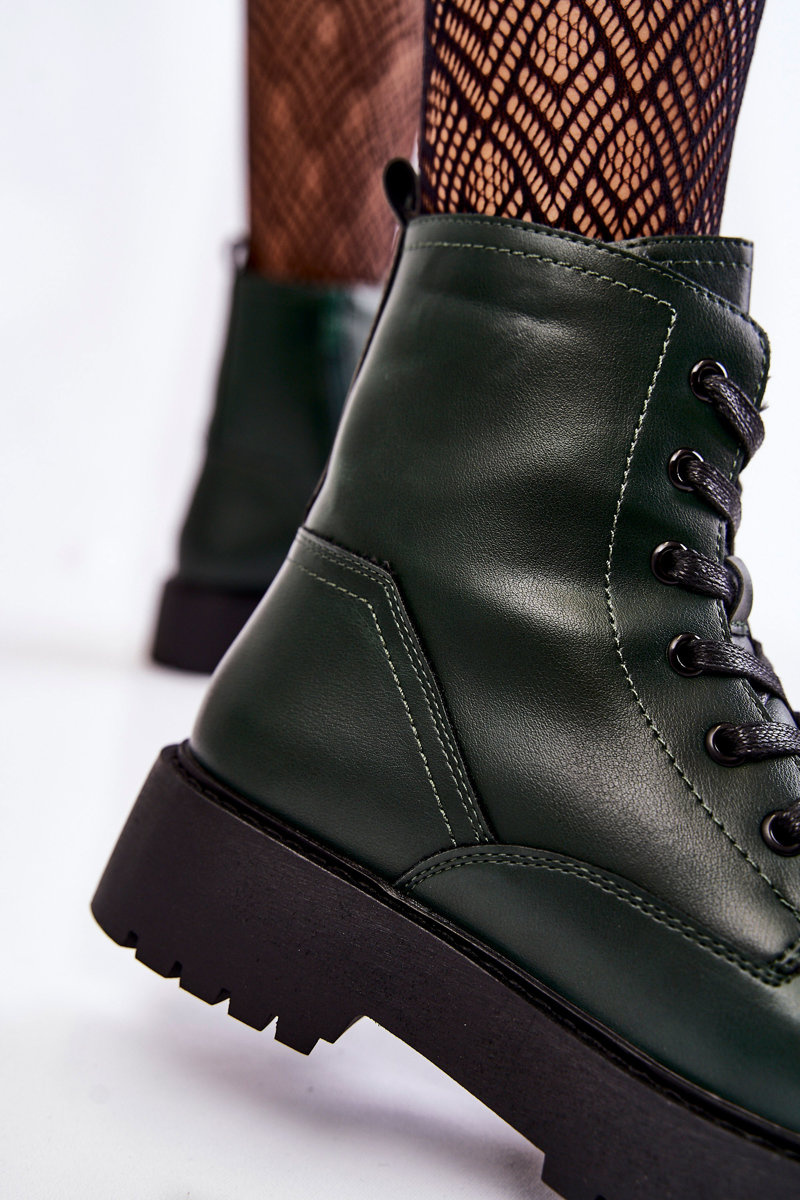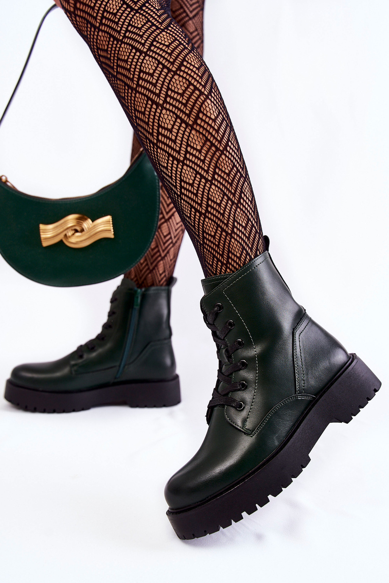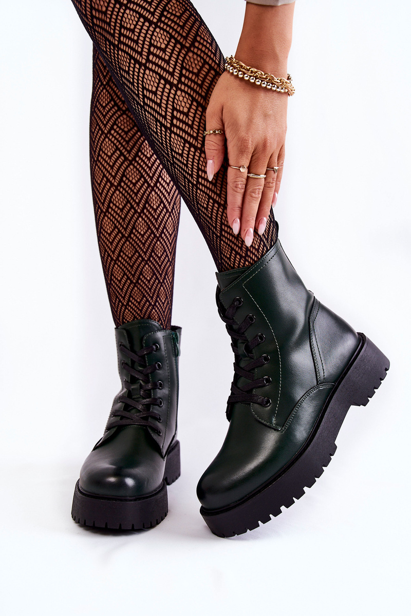 Uwielbianym i najczęściej wybieranym modelem przez kobiety są botki na płaskim, stabilnym obcasie. Posiadają wiele atutów, jednak głównym z nich jest zapewnienie wysokiego komfortu podczas noszenia. Zostały wykonane z eko skóry. Model sznurowany, z dodatkowym suwakiem z boku. Podeszwa z bieżnikiem wykonana z tworzywa sztucznego. Zapiętek usztywniany.