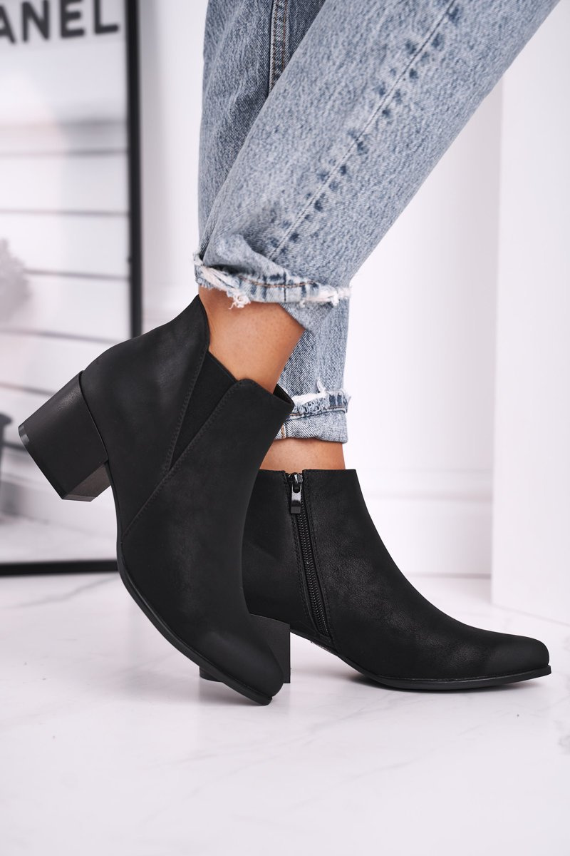 Botki Damskie Sergio Leone Sztyblety Eko Nubuk Czarne BT621
