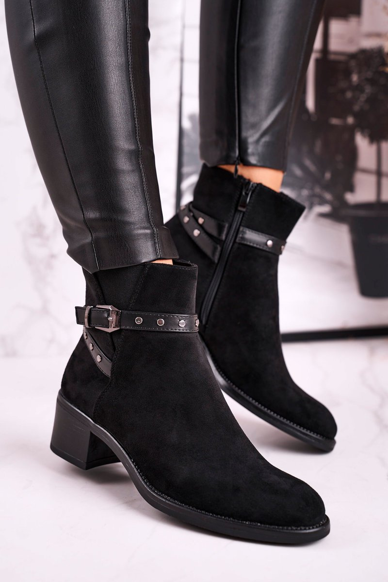 Botki Damskie Sergio Leone Zamszowe Czarne BT615