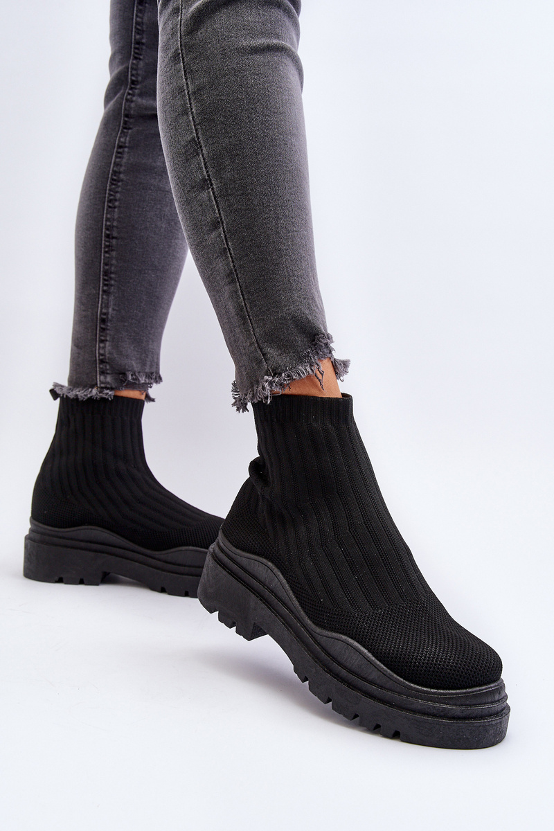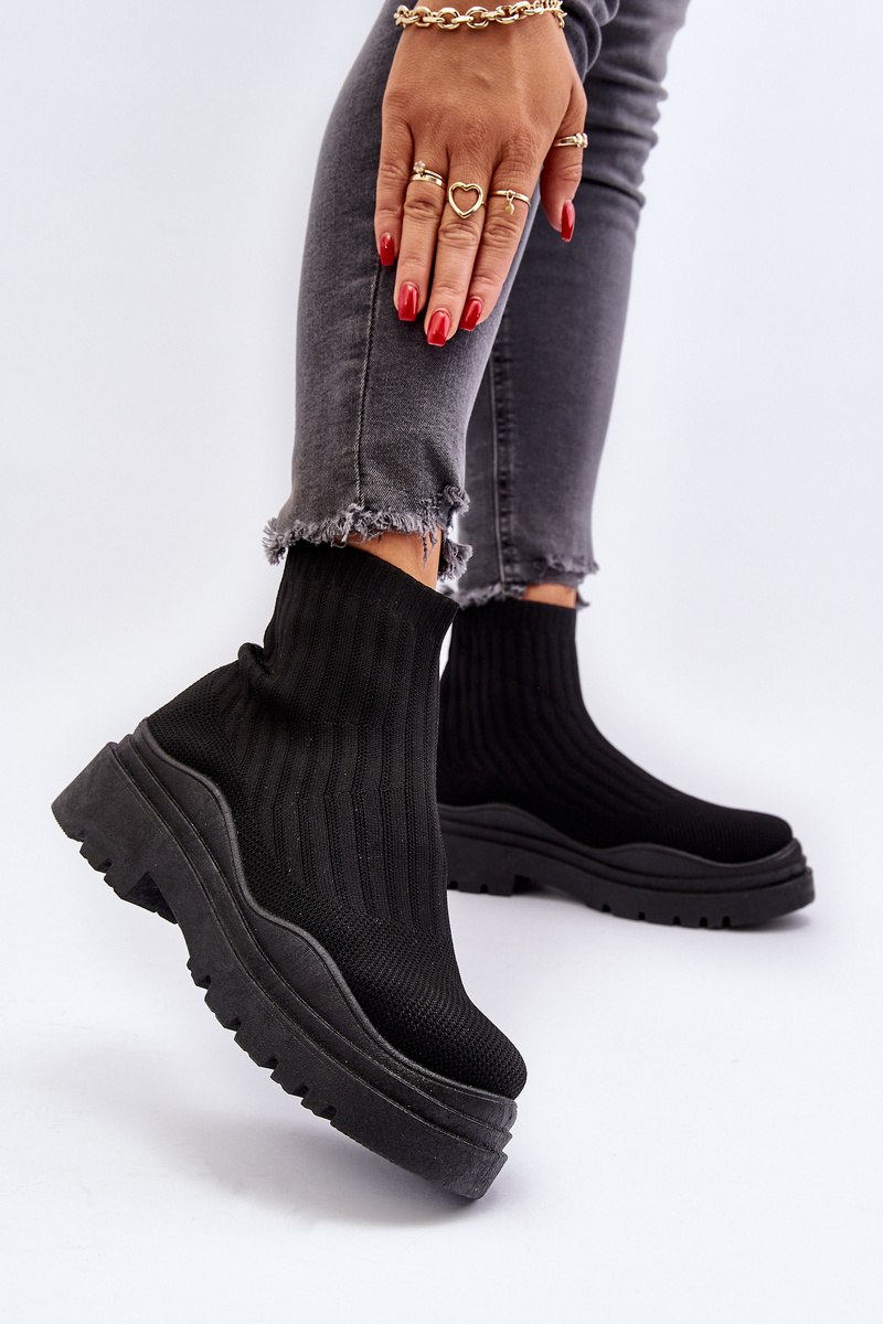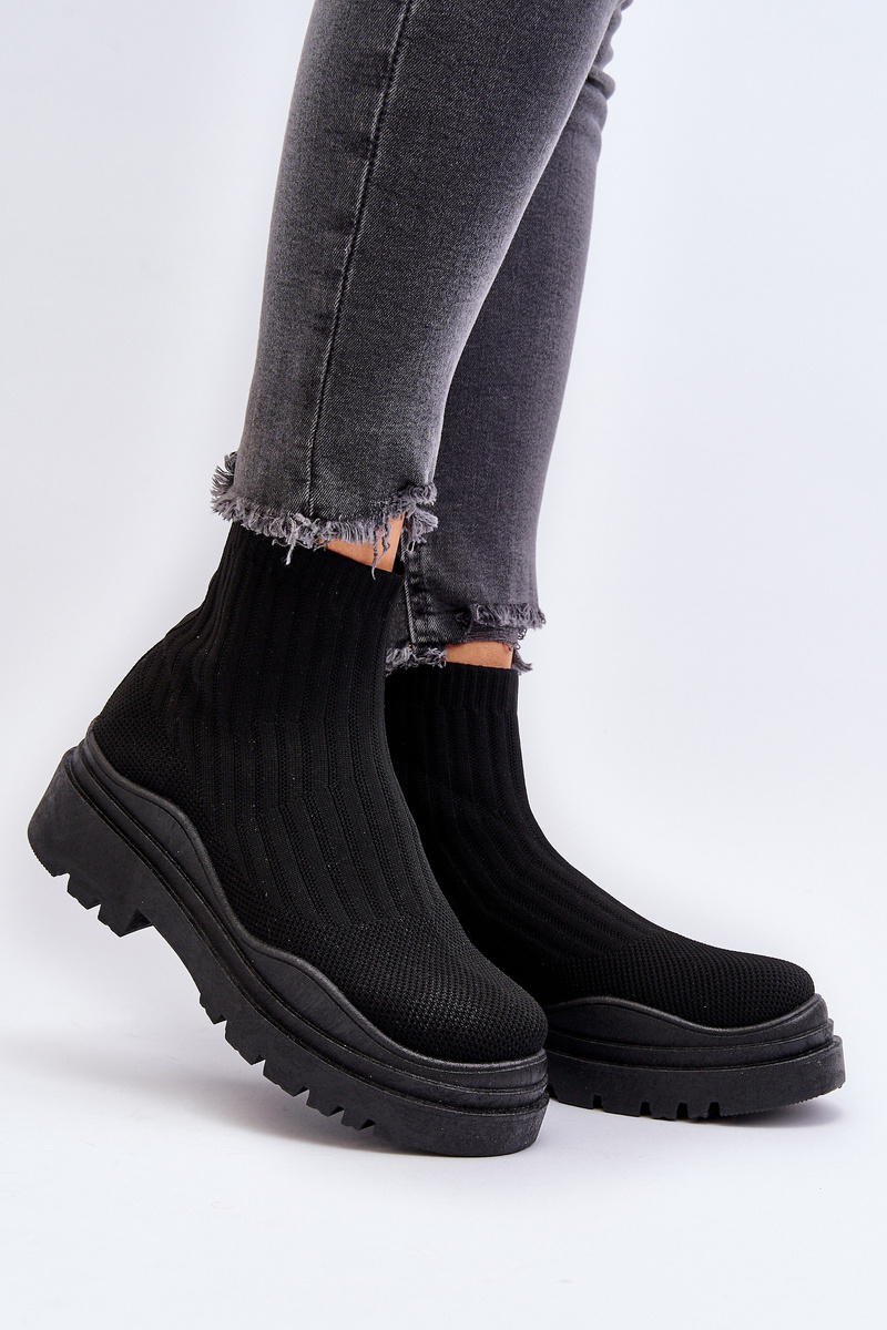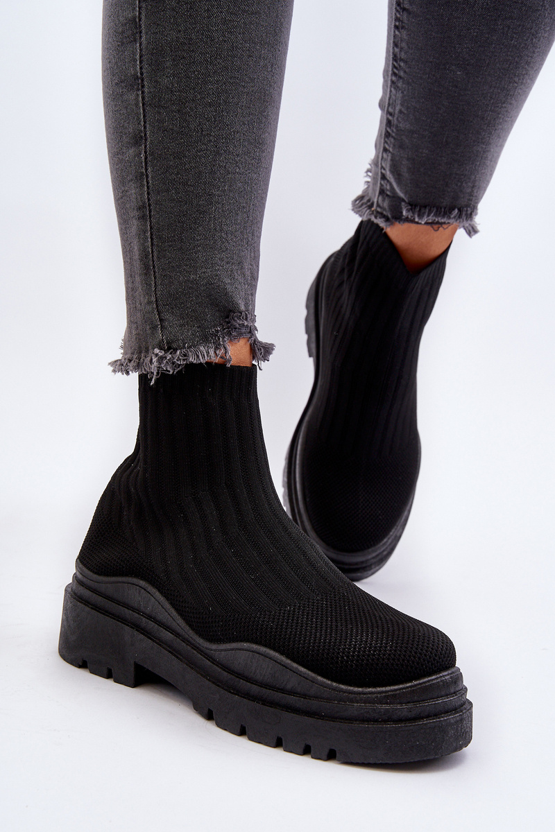 Botki Damskie Skarpetkowe Masywna Podeszwa Elipara Czarne 2082
