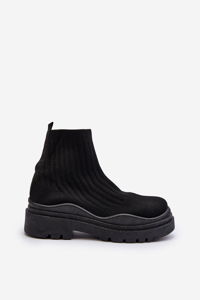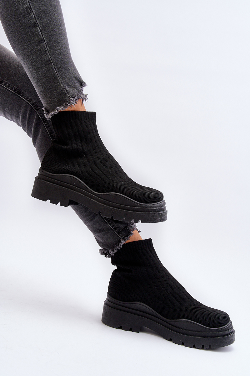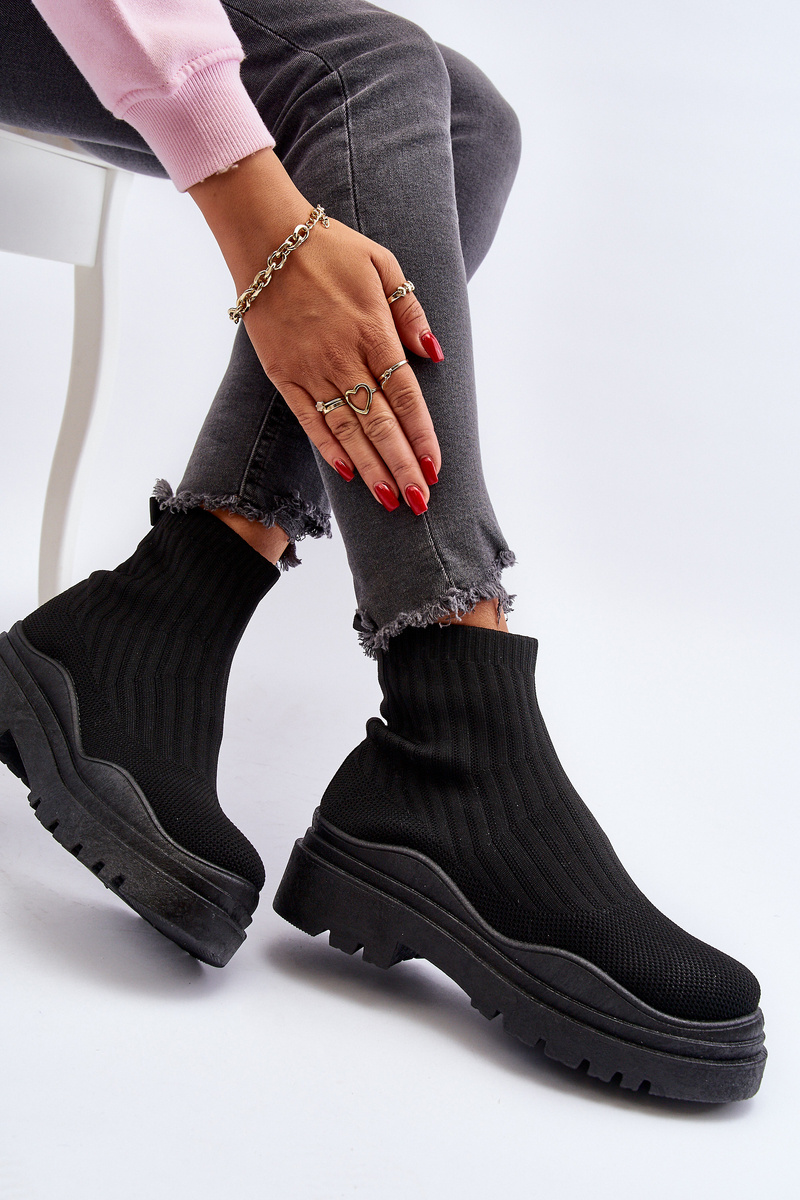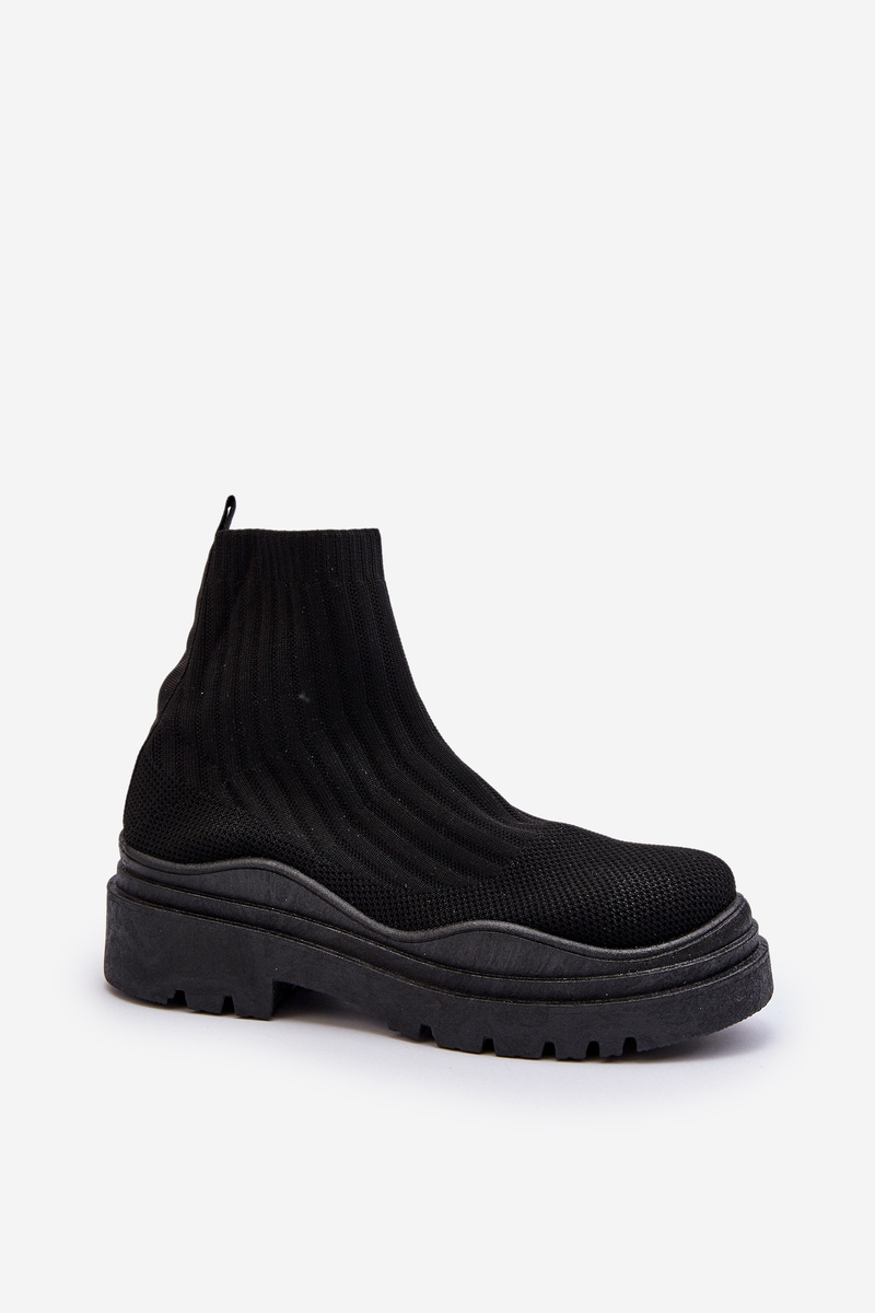 Botki Damskie Skarpetkowe Masywna Podeszwa Elipara Czarne 2082