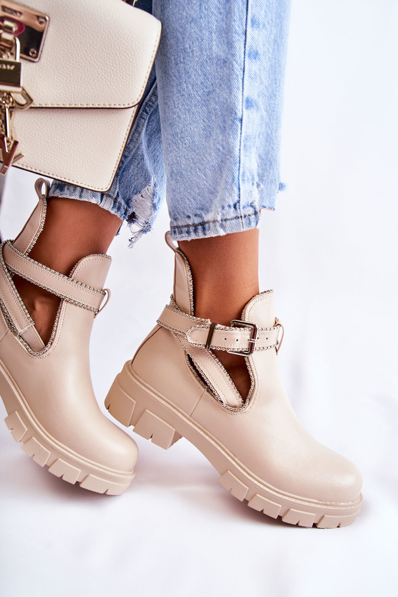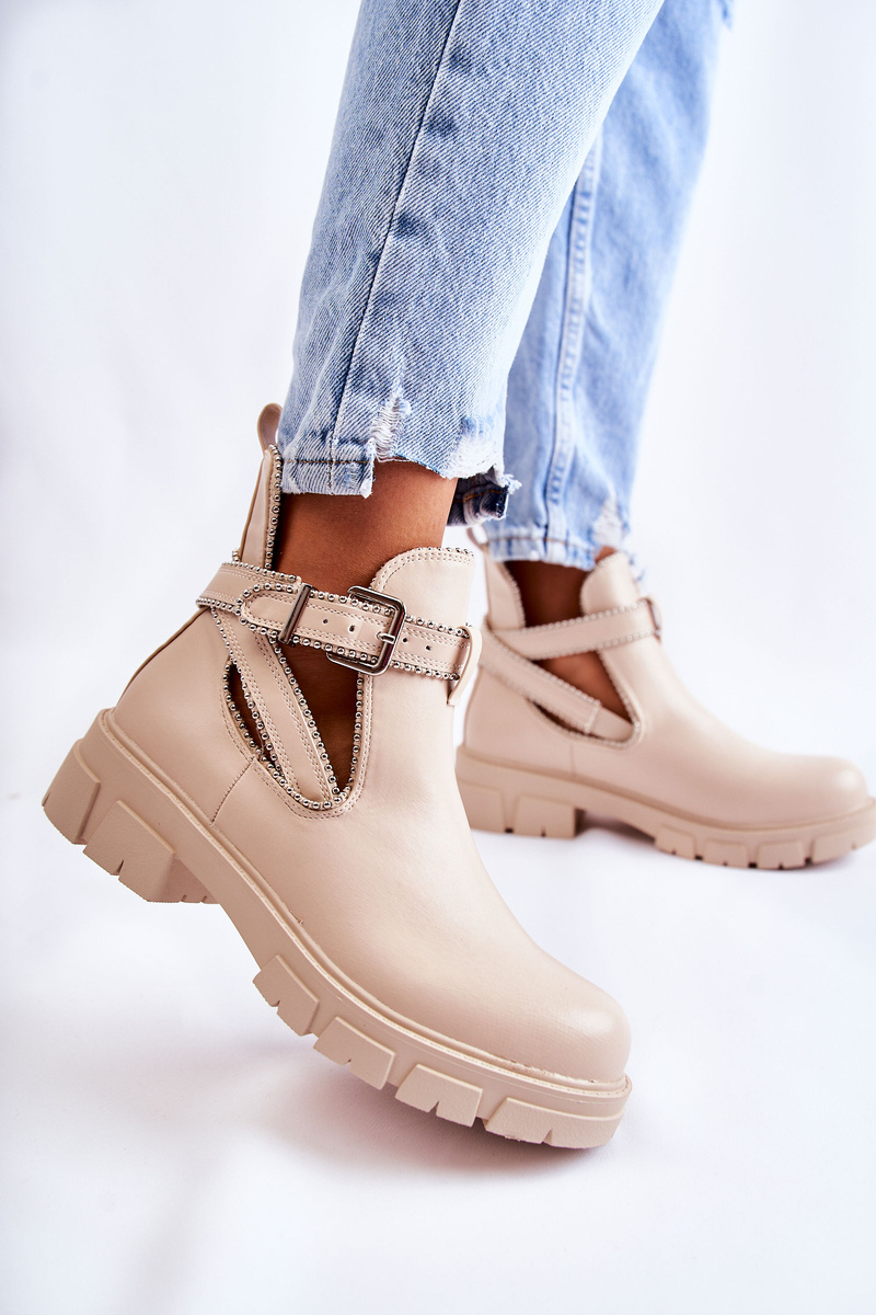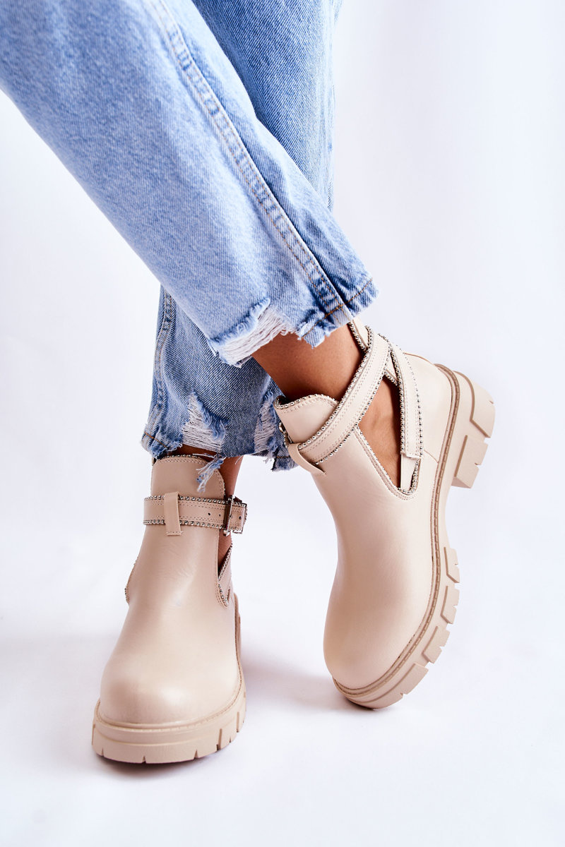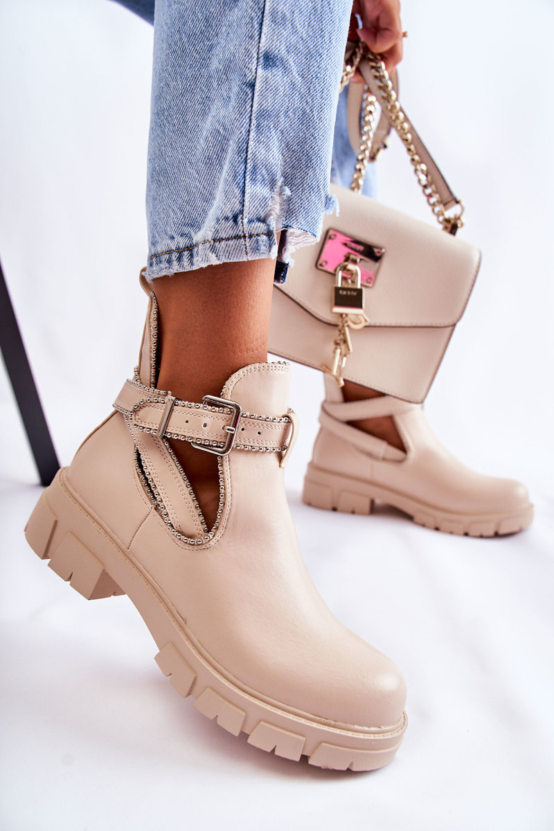 Botki Damskie Skóra Ćwieki Beżowe Clares