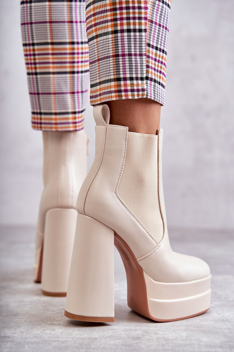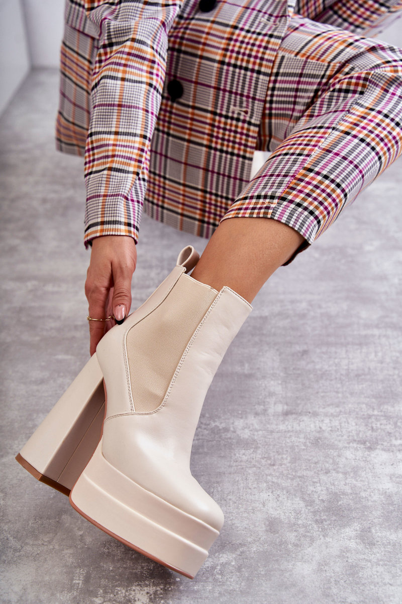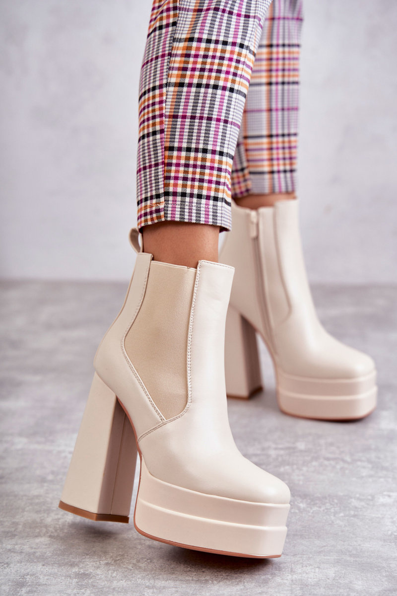 Botki Damskie Skóra Masywny Obcas Beżowe Jones