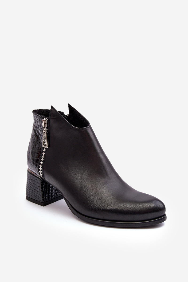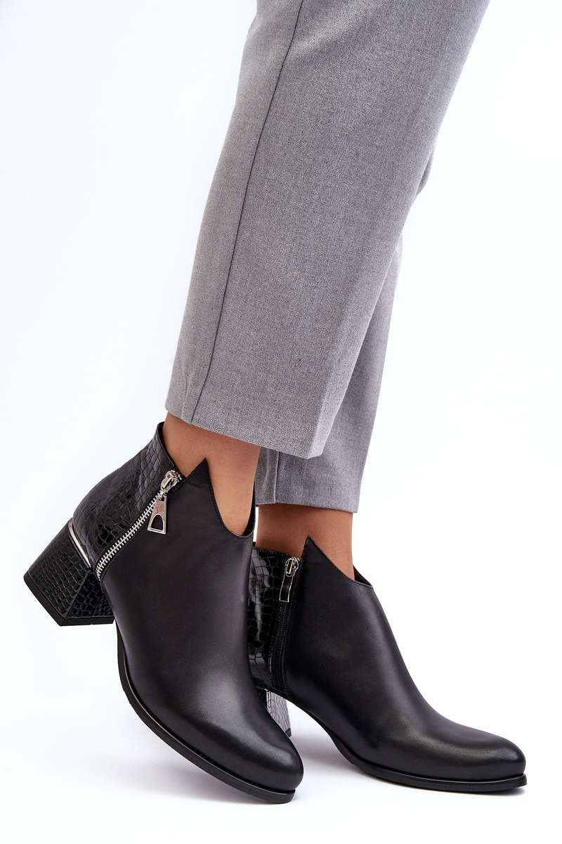 Botki Damskie Skóra Niski Słupek Czarne Zazoo 4111