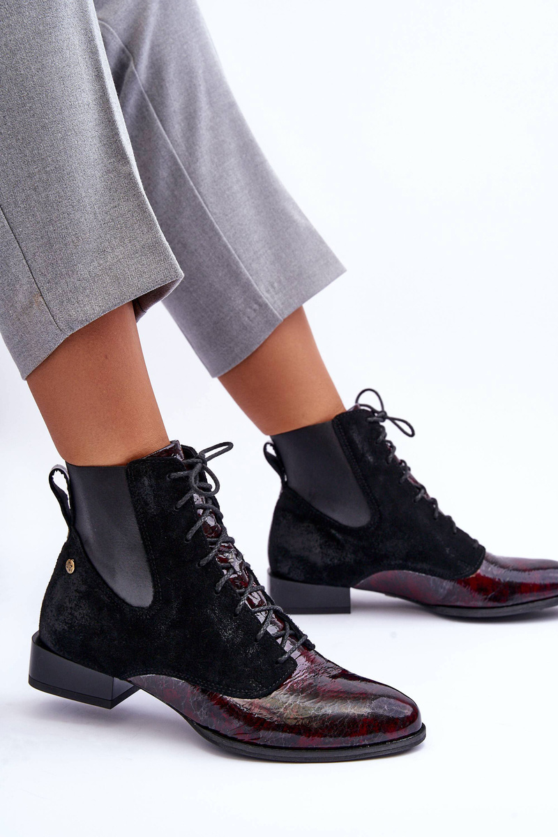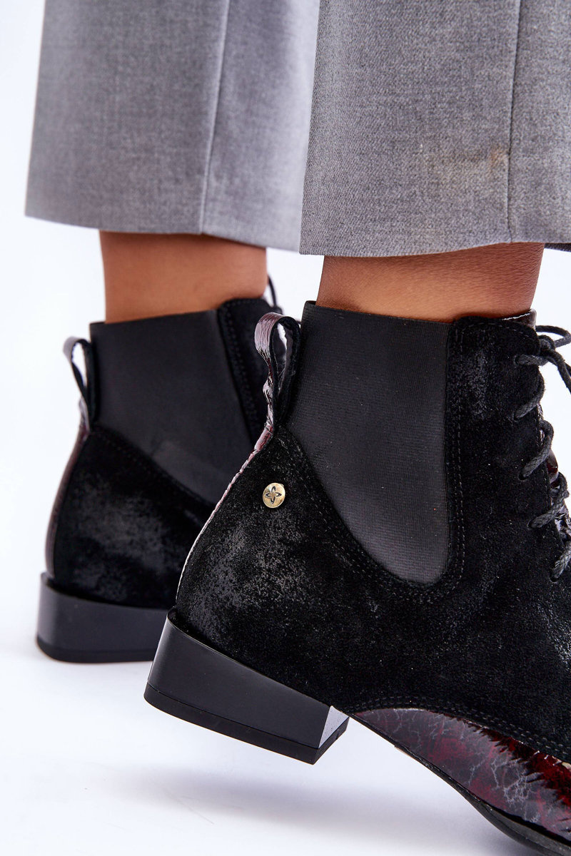 Botki Damskie Skóra Płaski Obcas Maciejka 06200-08 Czarne