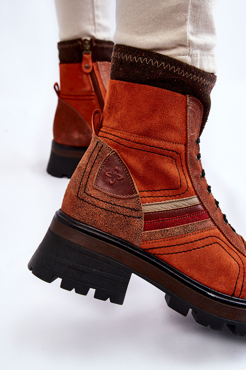 Botki Damskie Skóra Płaski Obcas Pomarańczowo-Brązowe Maciejka 05624-08