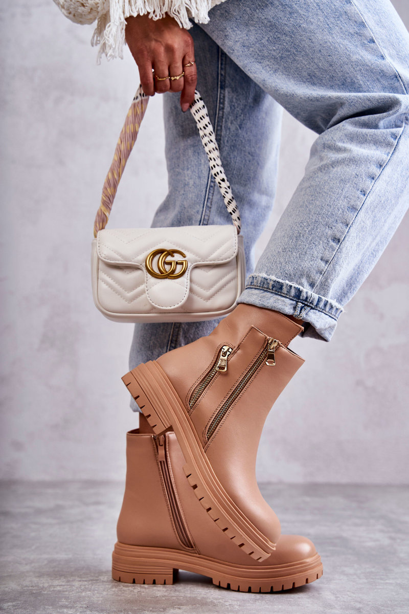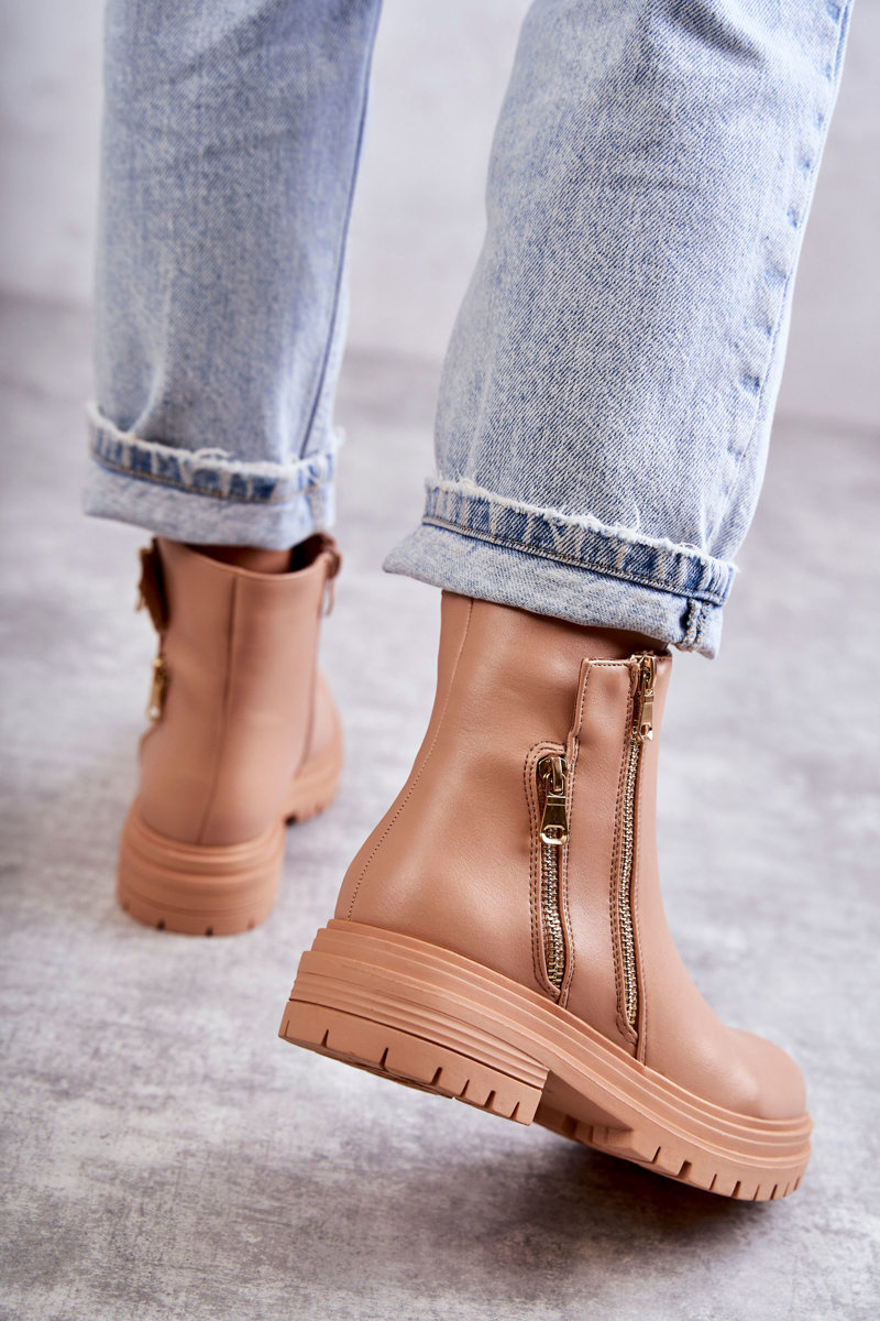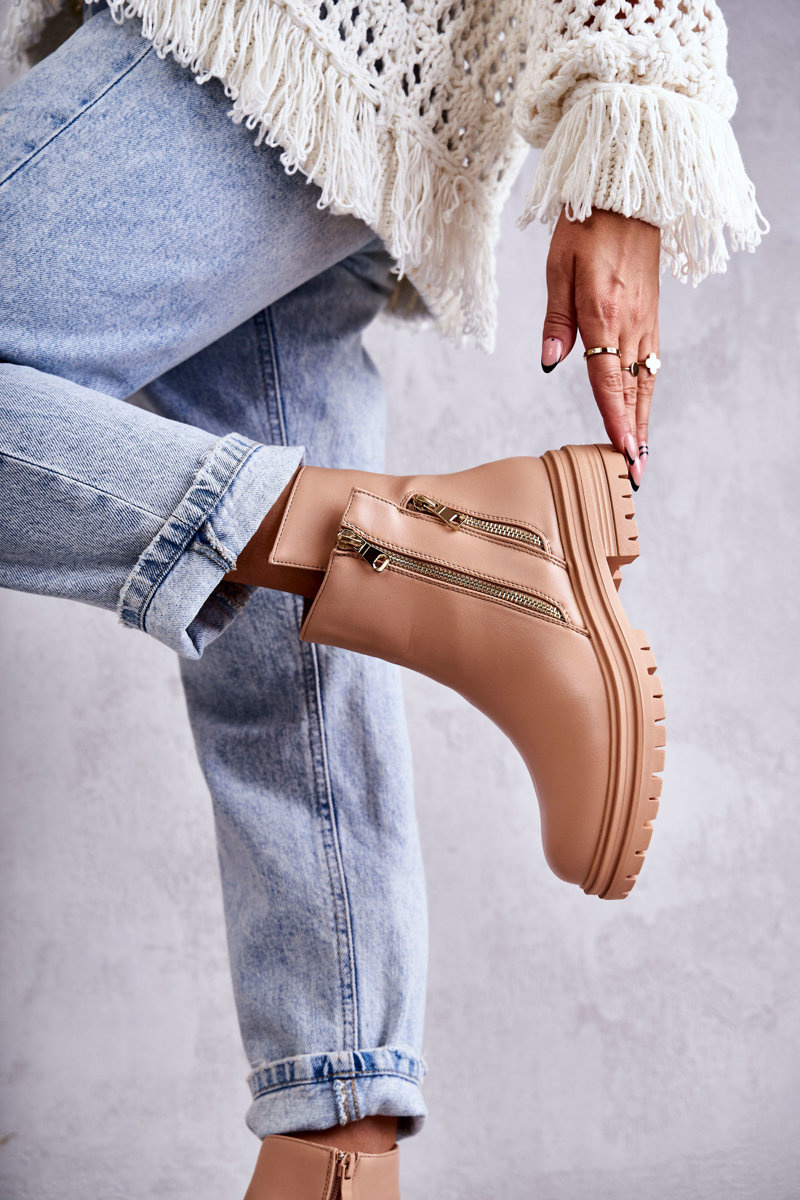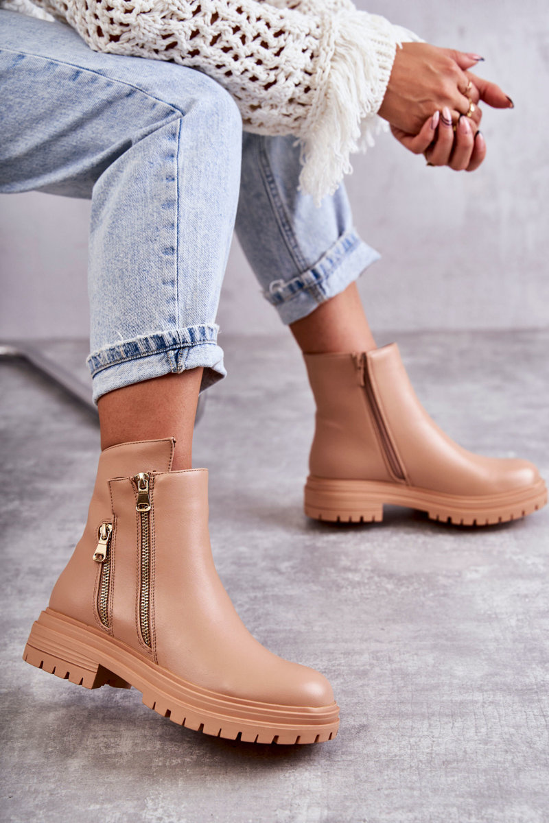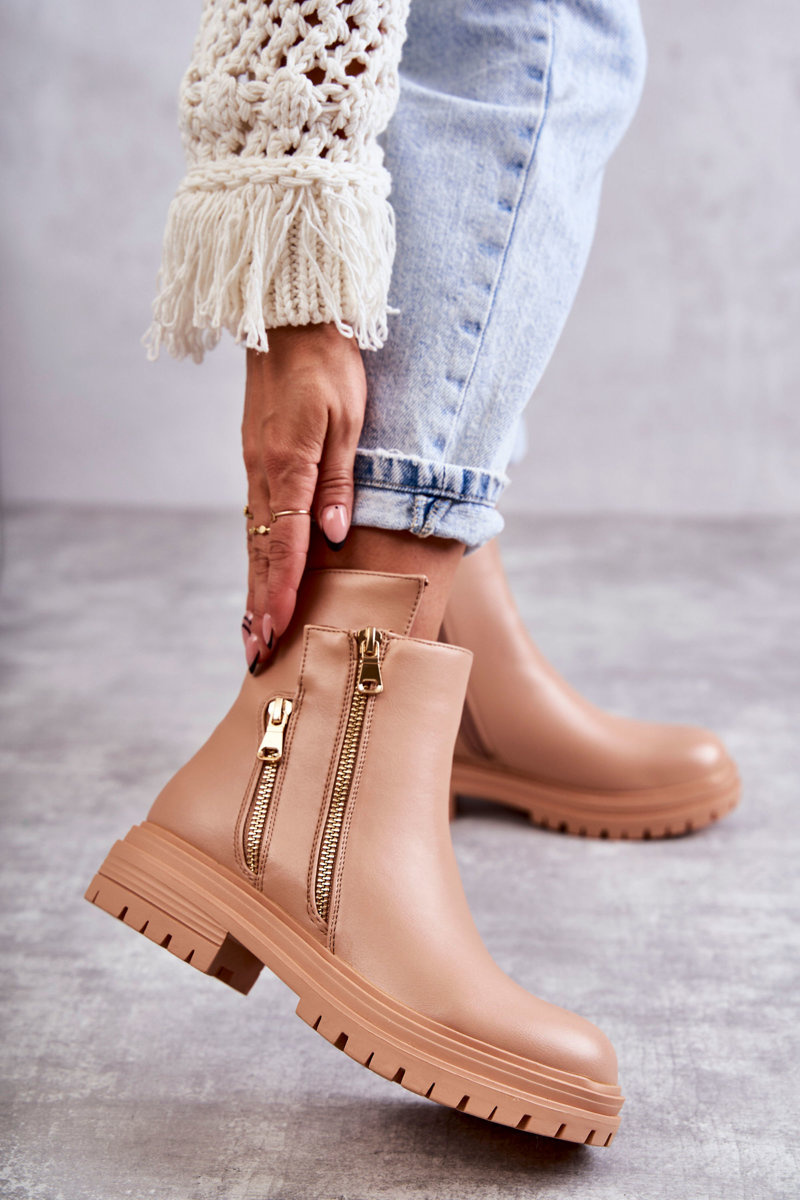 Botki Damskie Skóra Suwak Beżowe Navarra