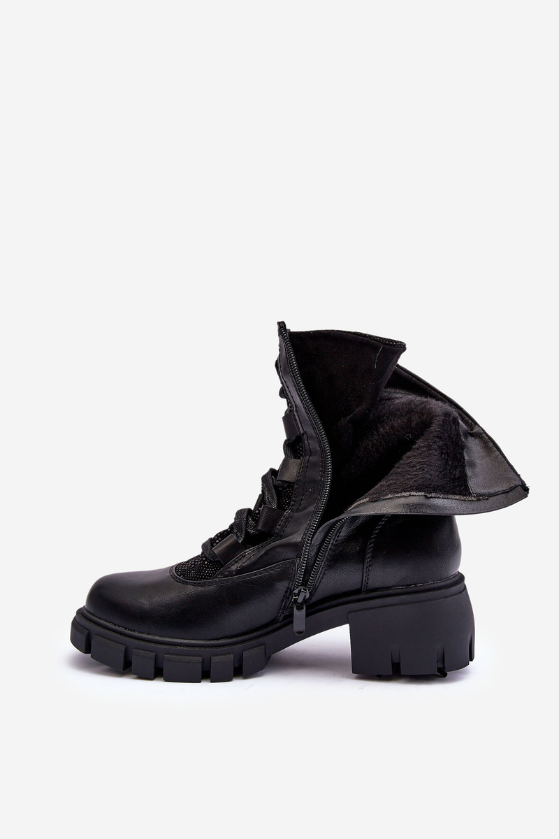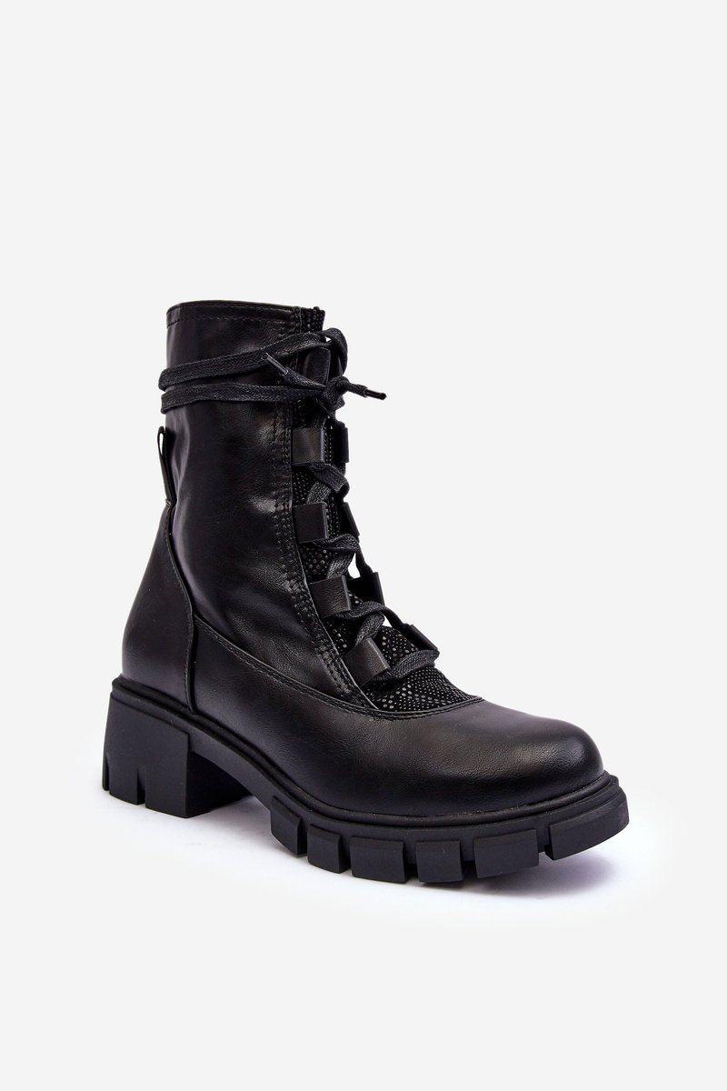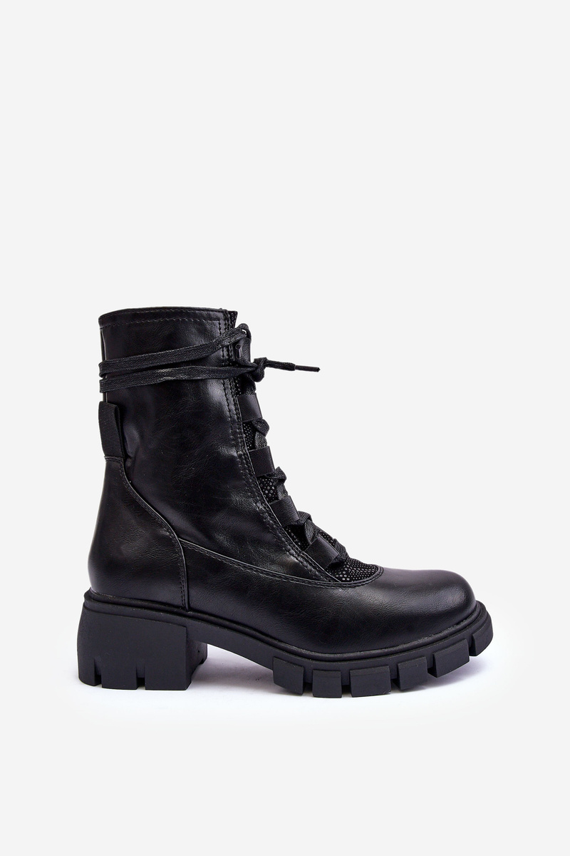 Botki Damskie Skóra Wiązanie Czarne Doreli 1586