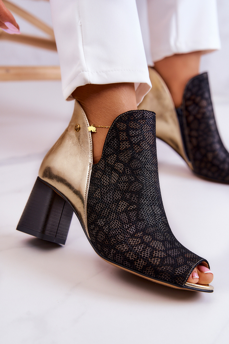 Botki Damskie Skórzane Obcas Słupek Czarno-Złote Maciejka 05507-01