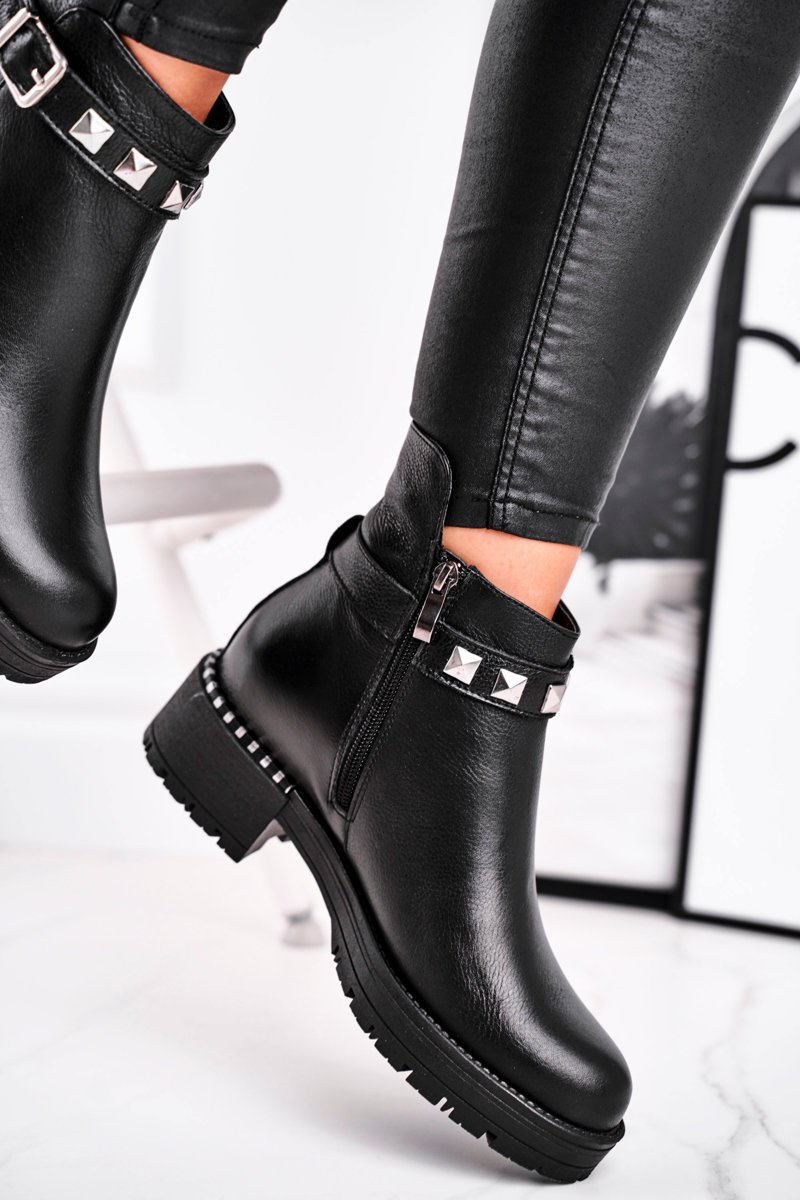 Botki Damskie Skórzane Ocieplane Laura Messi Czarne 2055