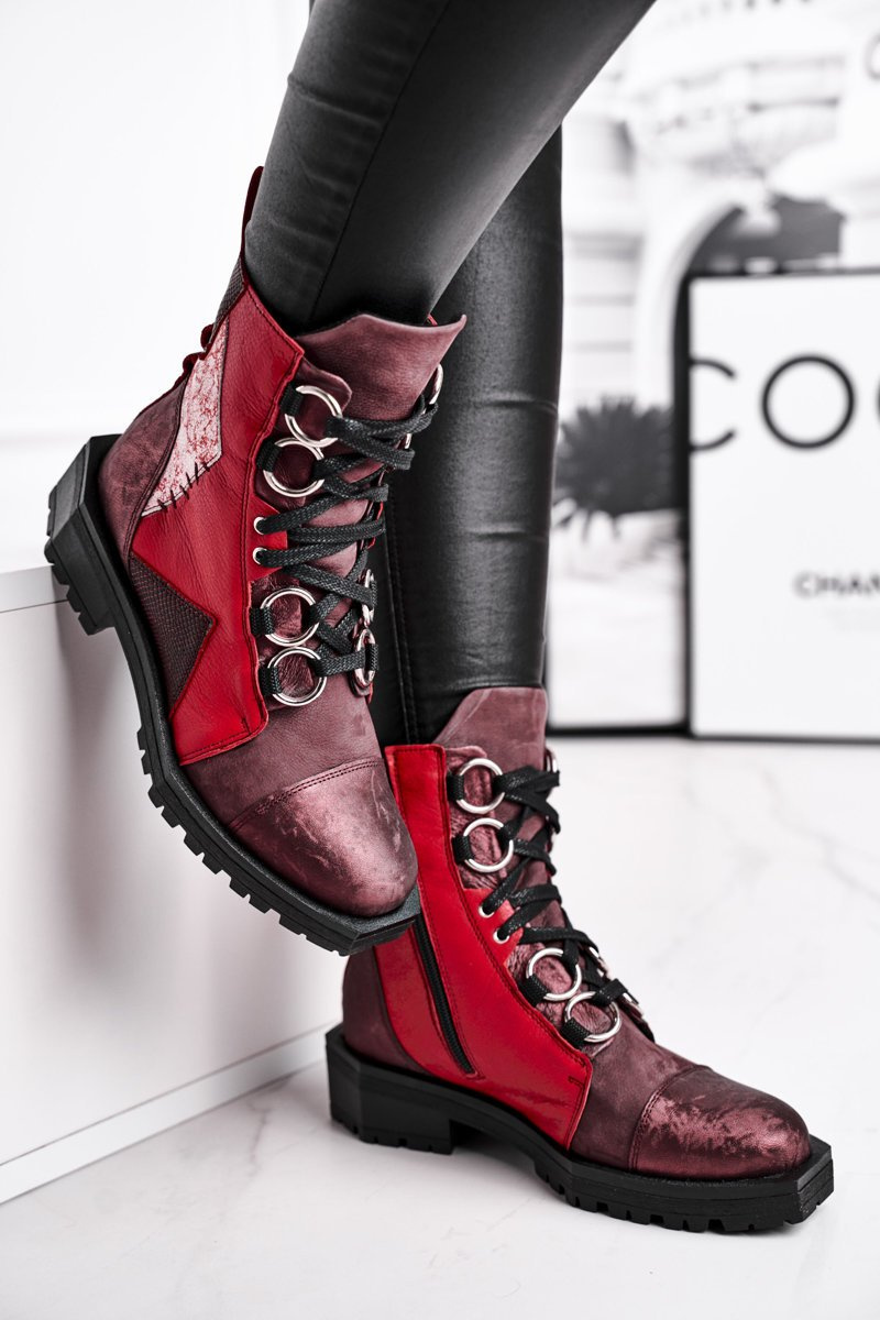 Botki Damskie Skórzane Trzewiki Maciejka Bordowe 04184-23/00-3