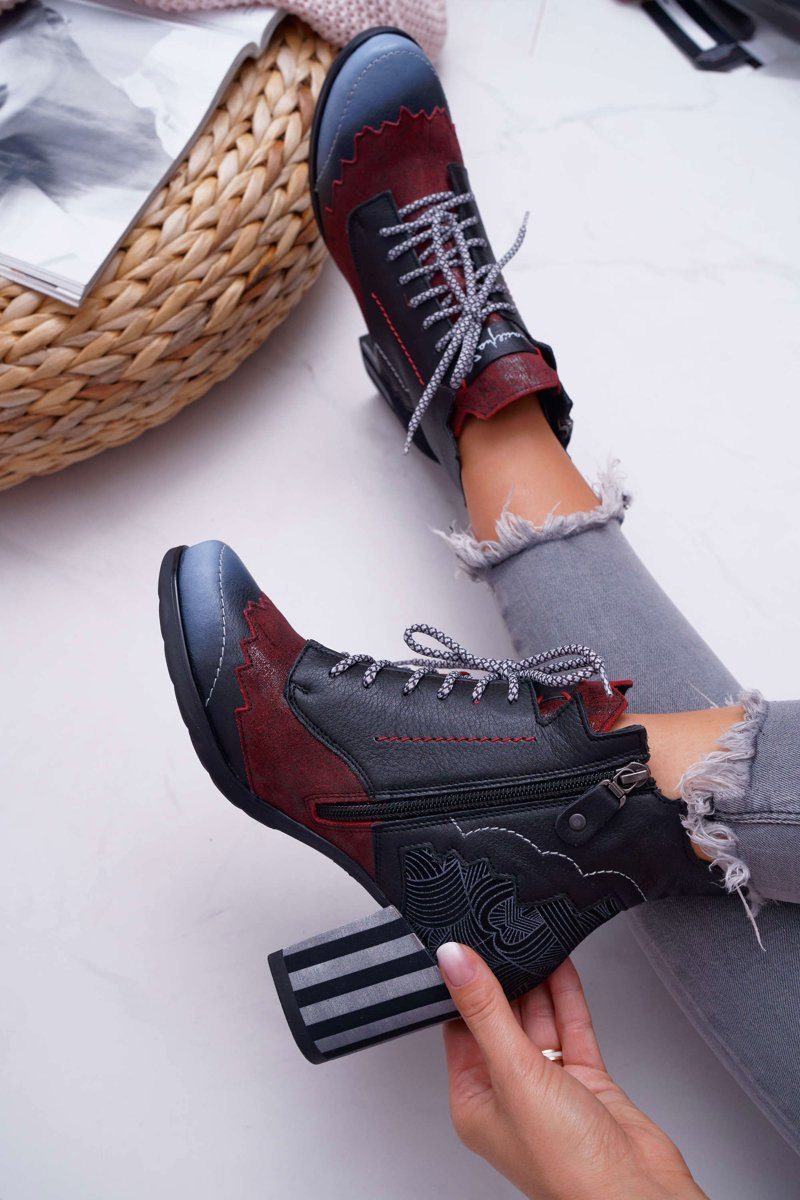 Botki Damskie Skórzane Trzewiki Maciejka Czarne 03190-01