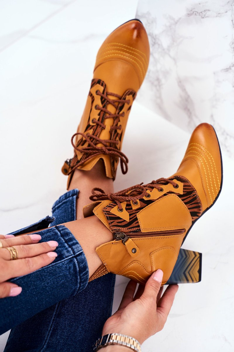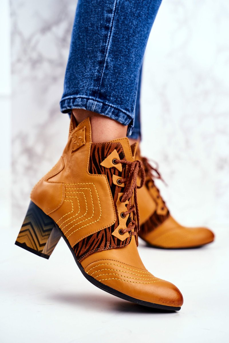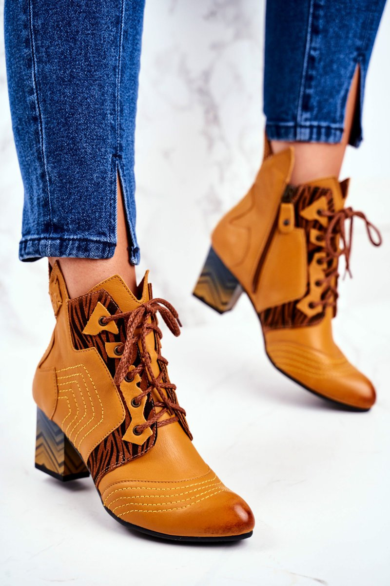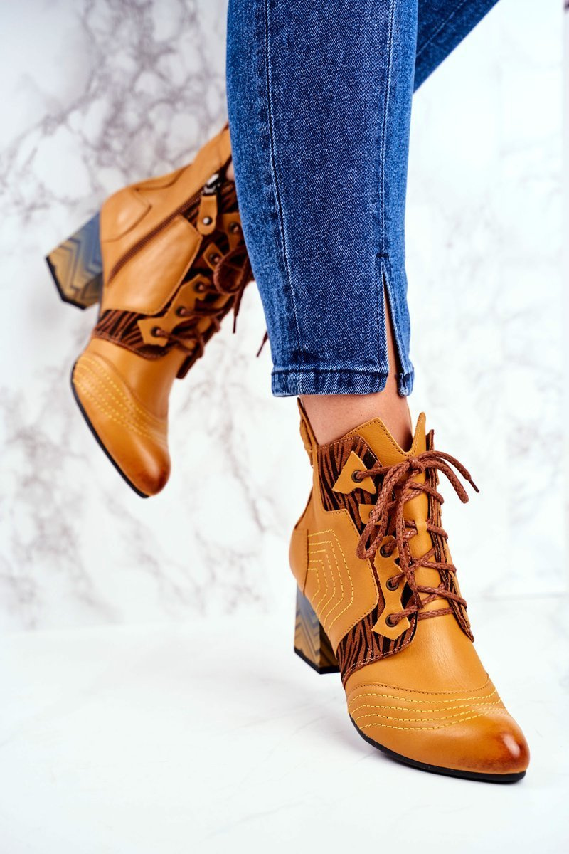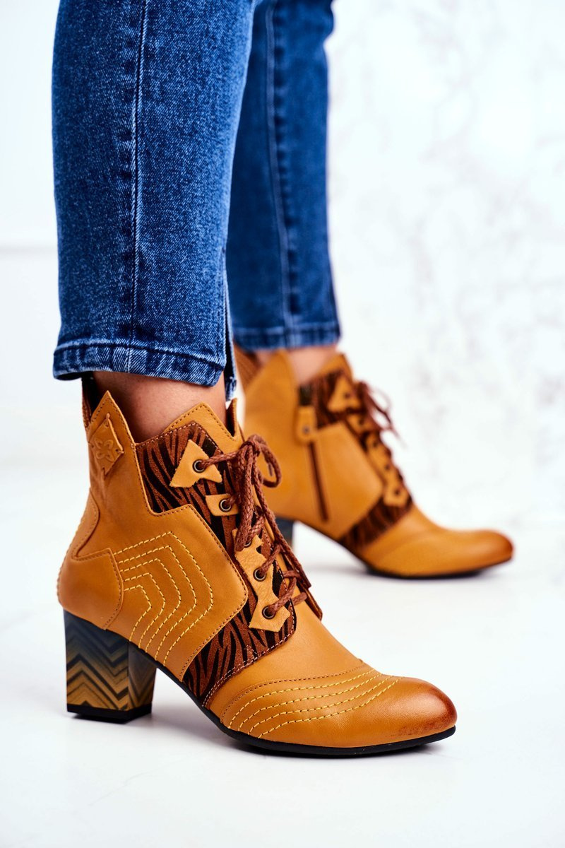 Botki Damskie Skórzane Trzewiki Maciejka Żółte 03194